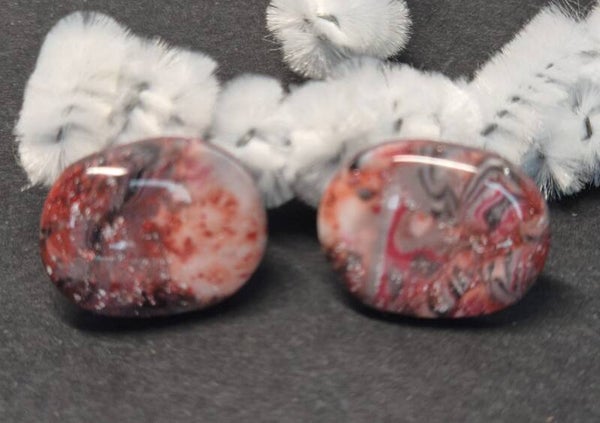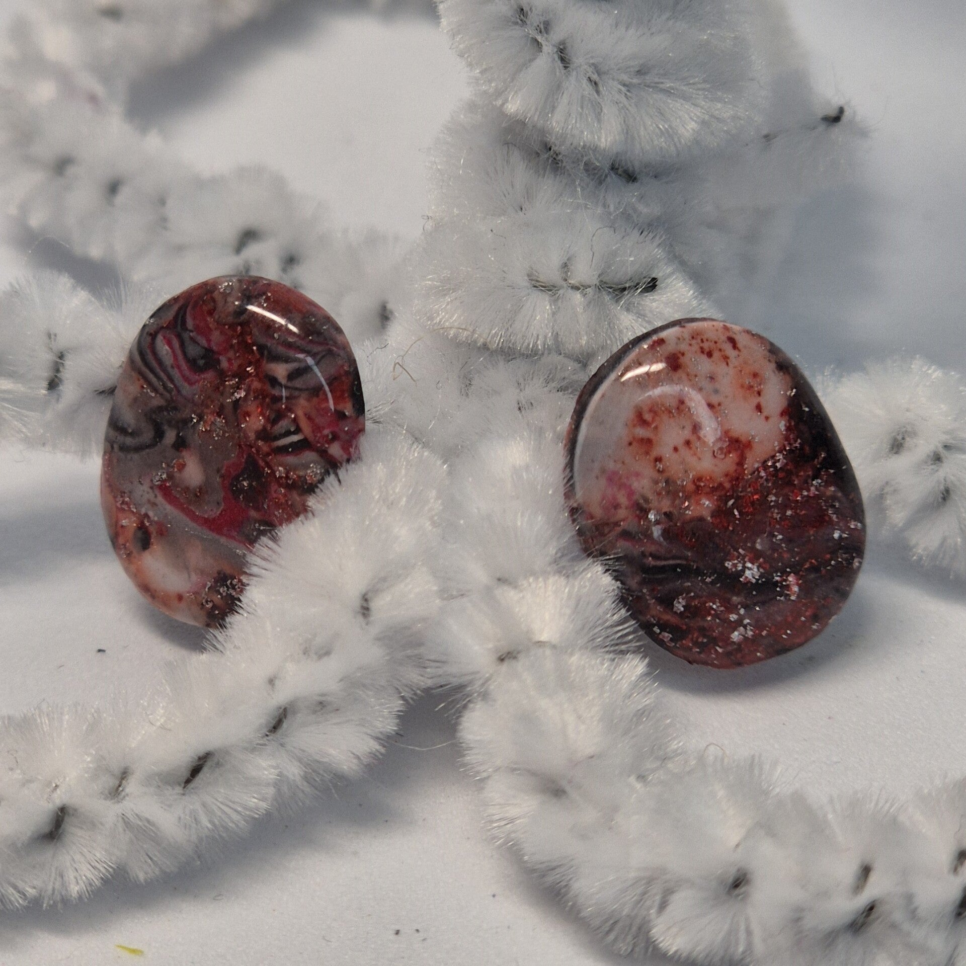 Pendientes artesanales hechos con arcilla polimérica en color rojo, negro y blanco con un toque de plata, ligeros, perfectos para cualquier ocasión.