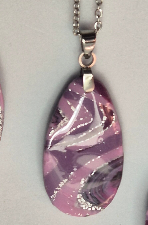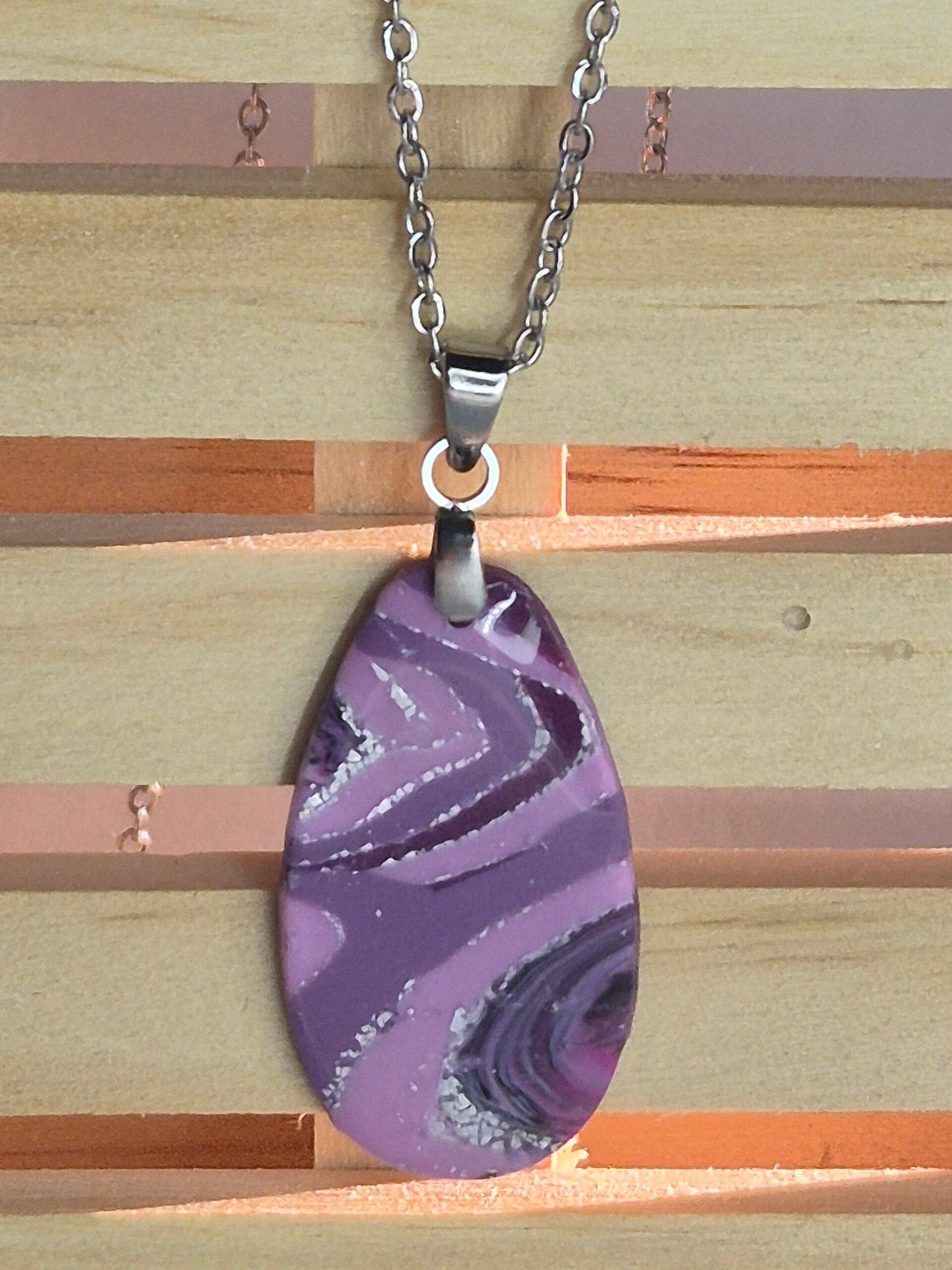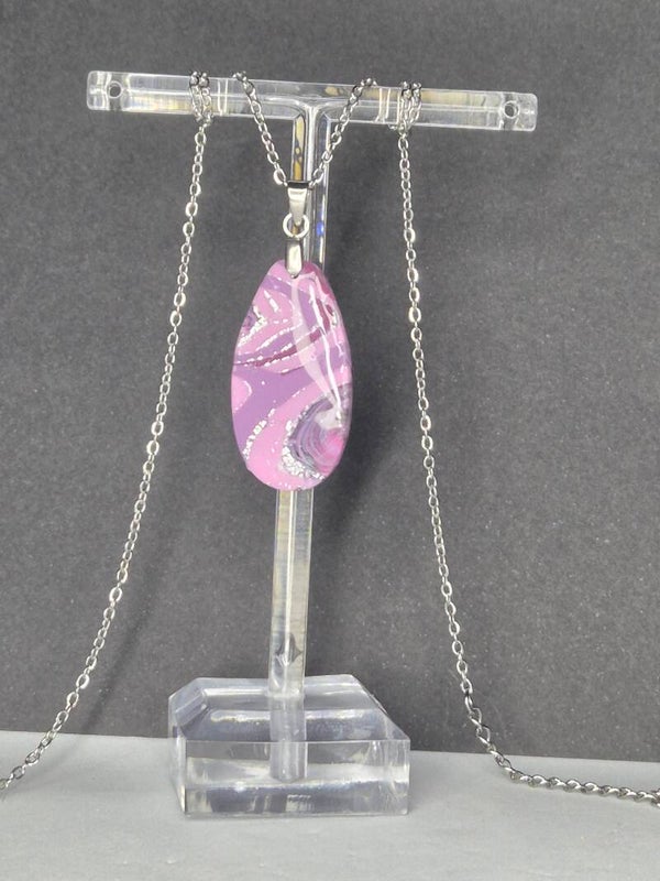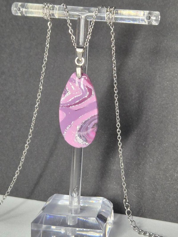 Colgante realizado con arcilla polimérica en colores desde orquídea a rosa palo con un brillo de plata.
