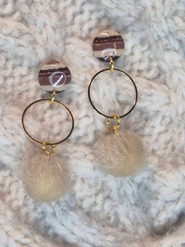 Pendientes de arcilla polimérica en tonos beis a marrón con brillos de oro.