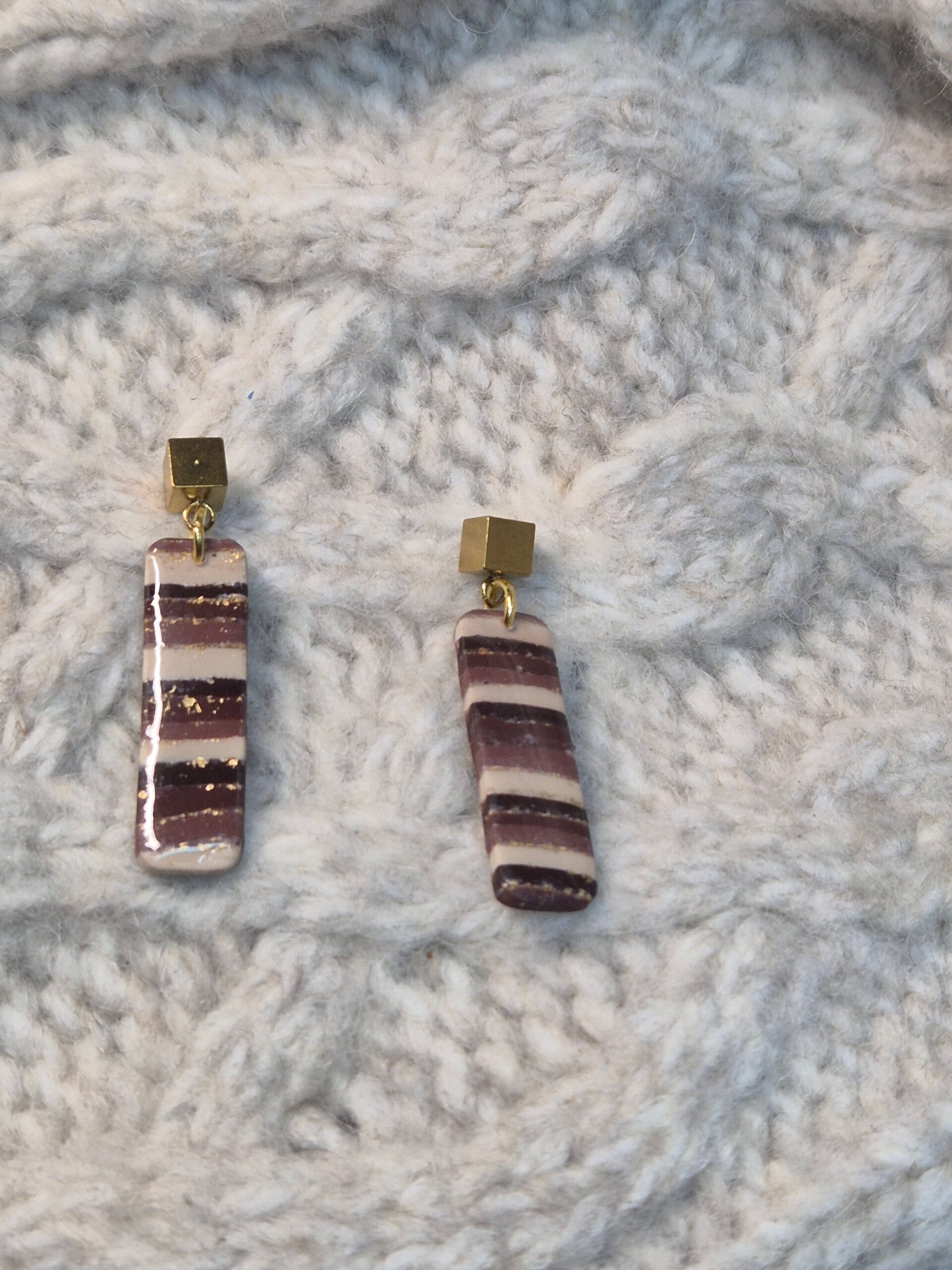 Pendientes de arcilla polimérica en tonos beis a marrón con brillos de oro.