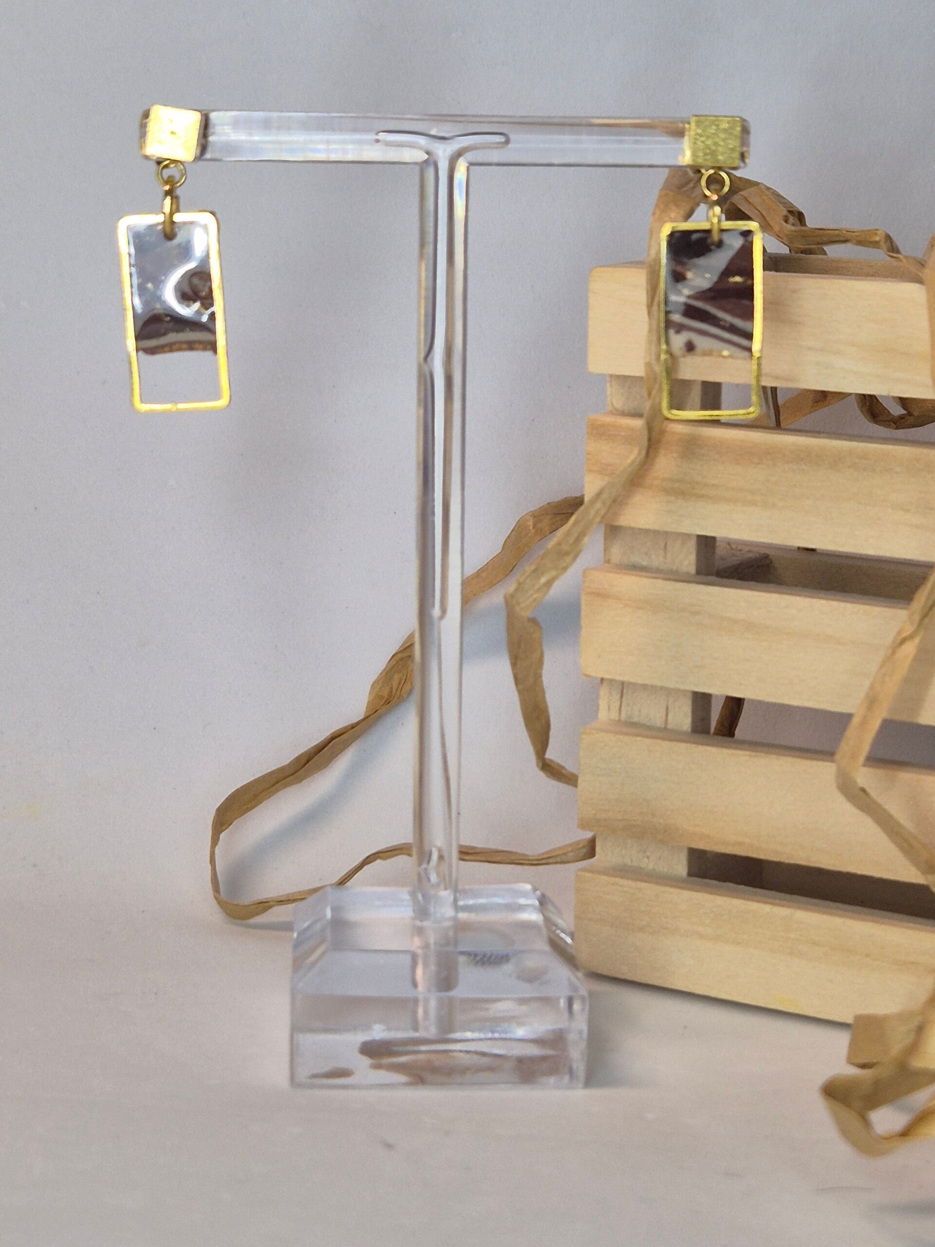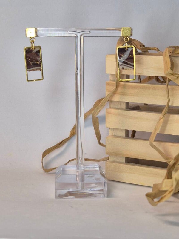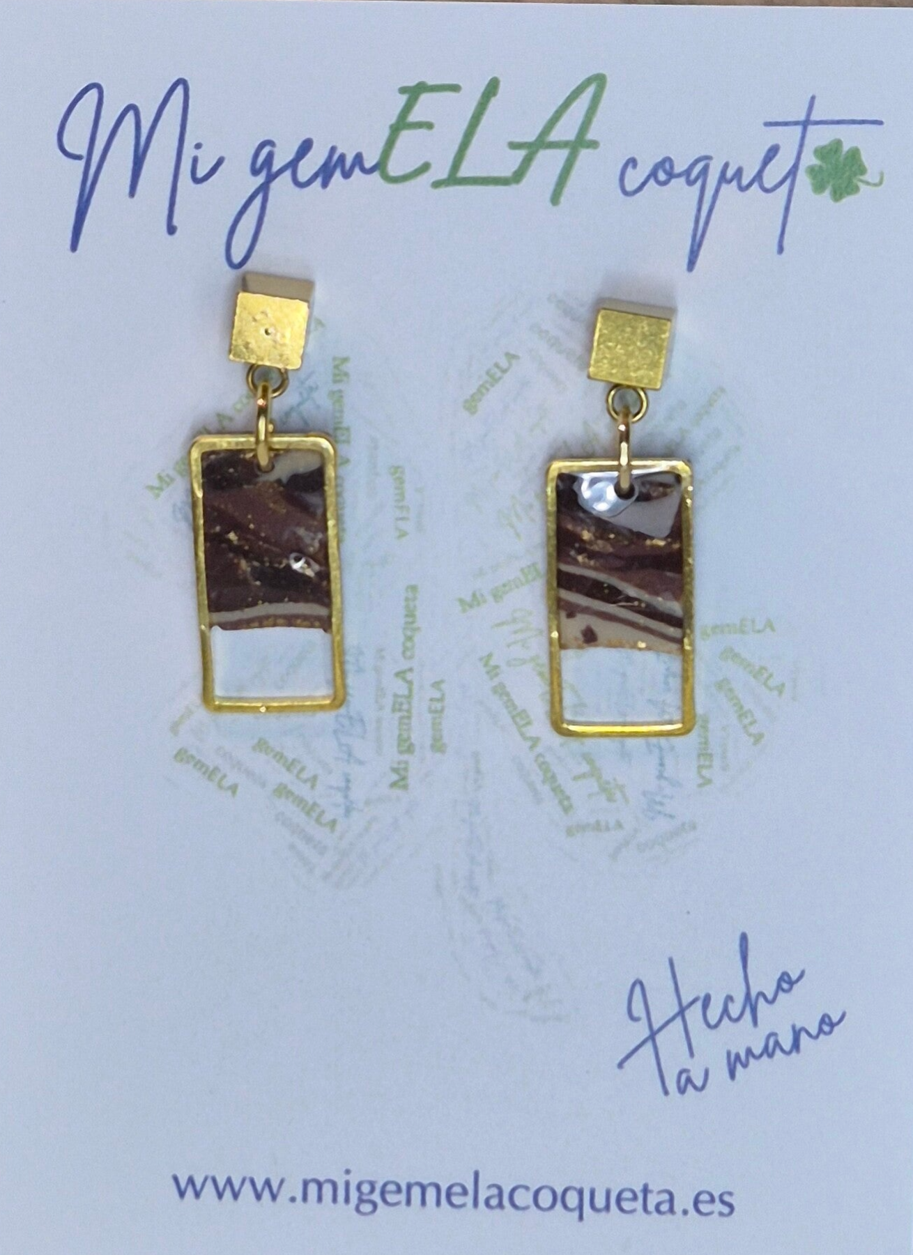 Pendientes de arcilla polimérica en tonos beis a marrón con brillos de oro.