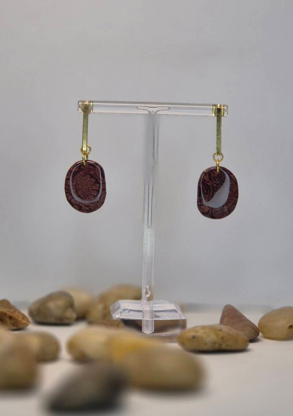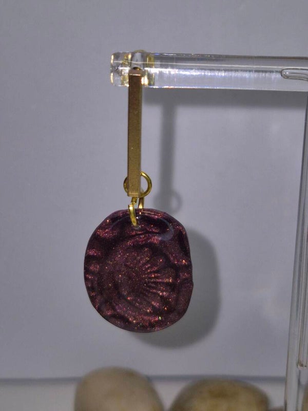 Pendientes de la colección OTOÑO, hechos de forma artesana con arcilla polimérica metalizada en granate.