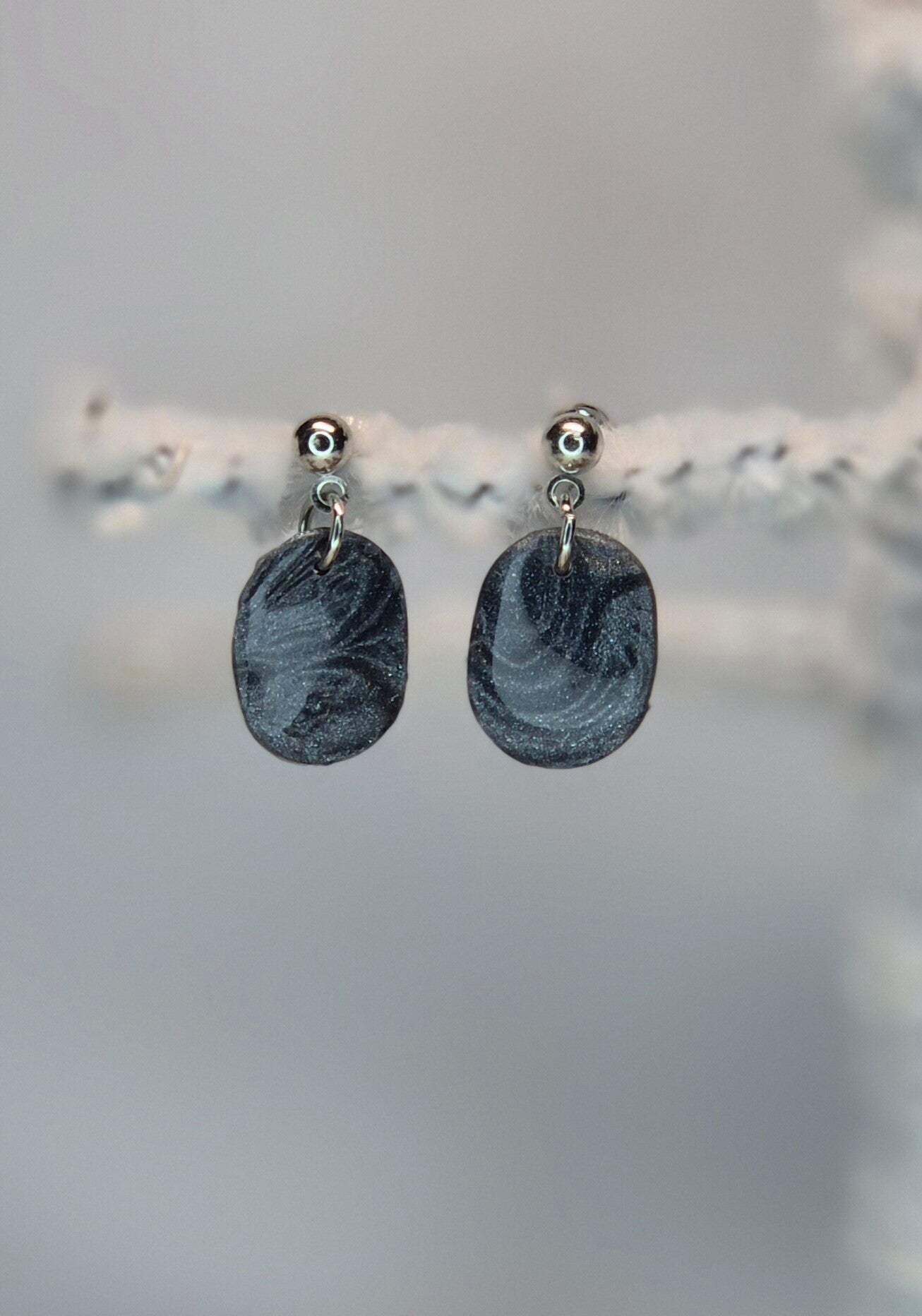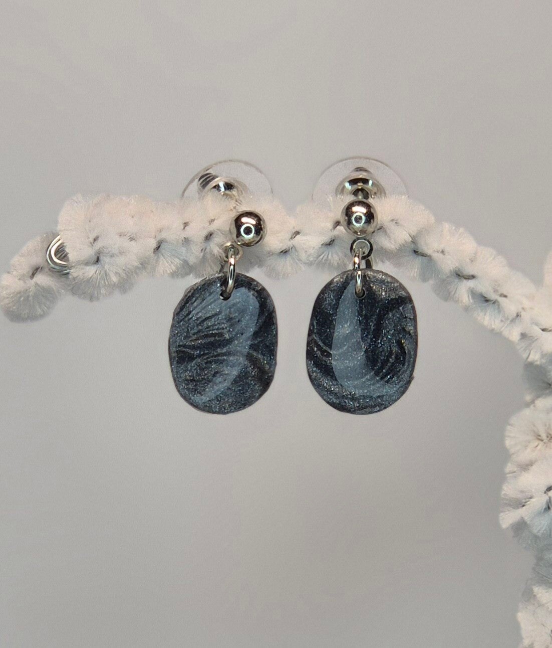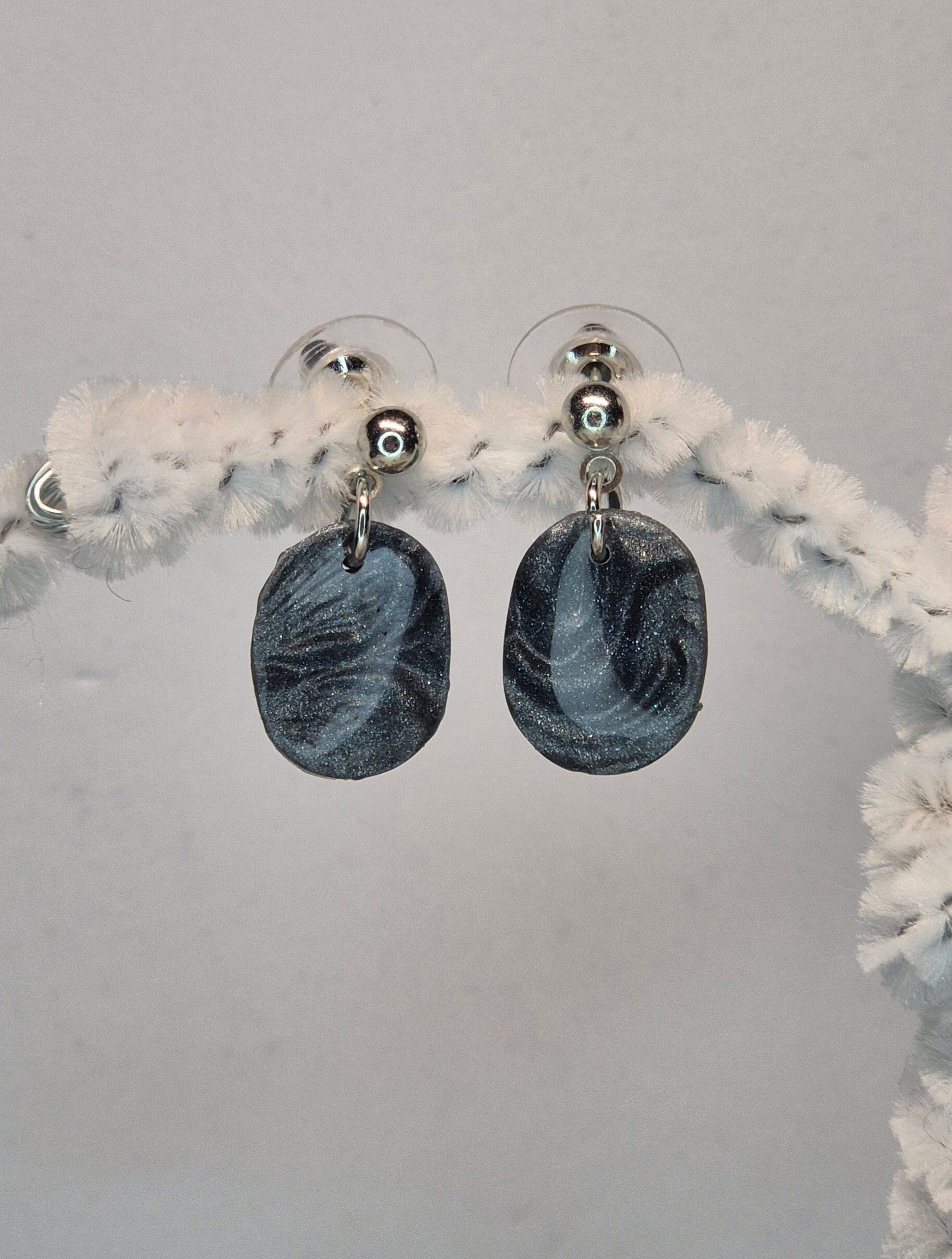 Pendientes de la colección OTOÑO, hechos de forma artesana con arcilla polimérica metalizada en color pizarra.