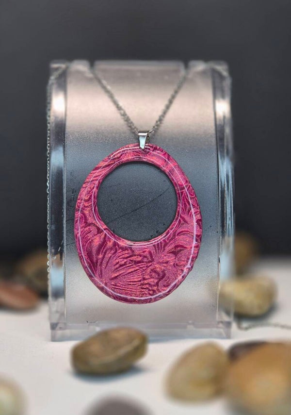 Colgante de la colección OTOÑO, hecho de forma artesana con arcilla polimérica metalizada en color esmeralda.