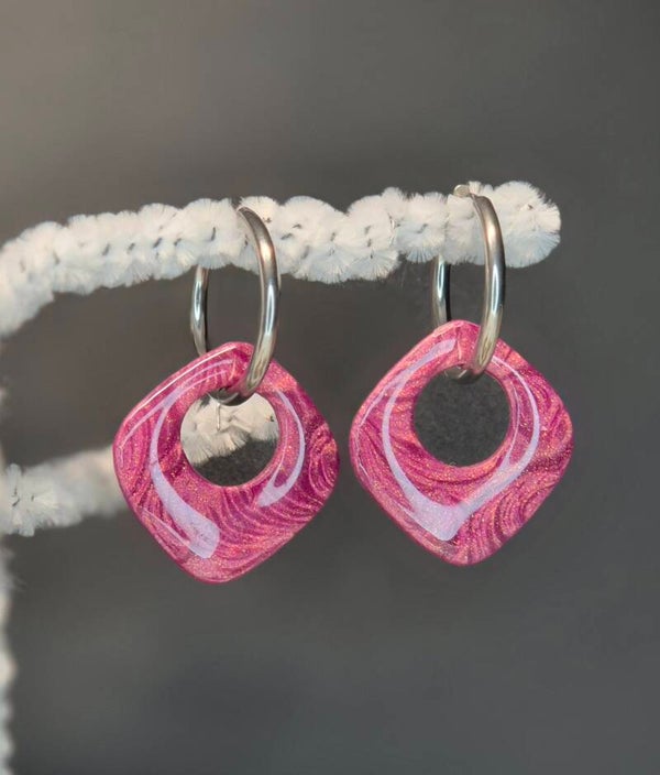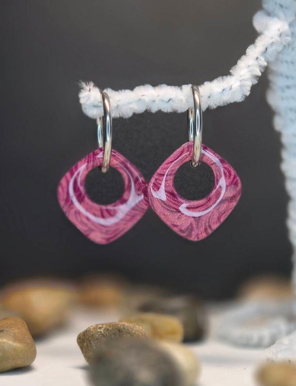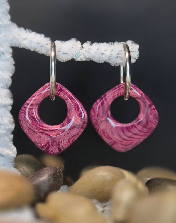 Pendientes de la colección OTOÑO, hechos de forma artesana con arcilla polimérica metalizada en color guinda