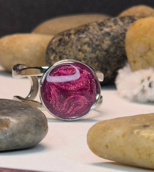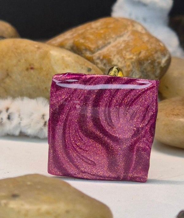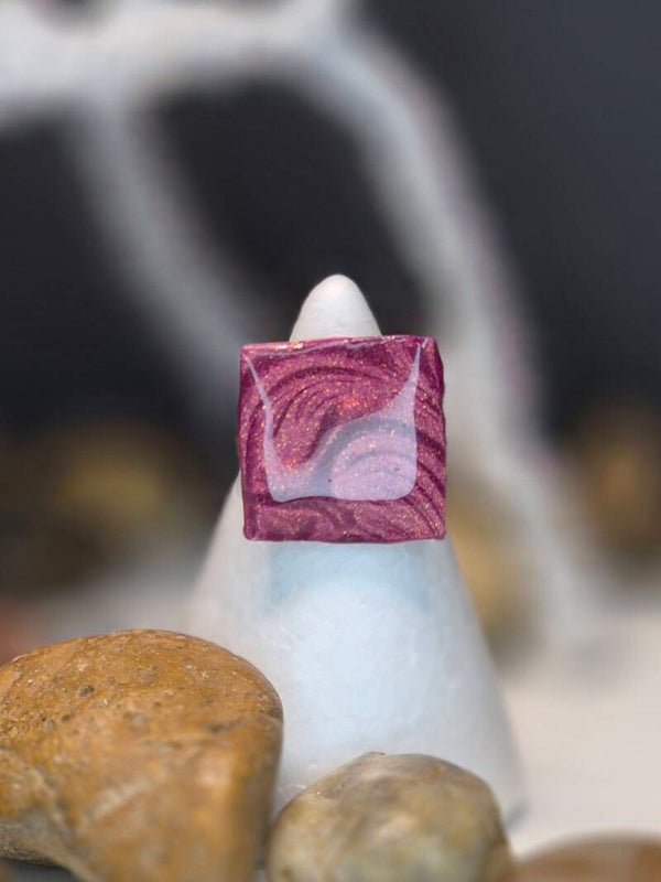 Anillos de la colección OTOÑO, hechos de forma artesana con arcilla polimérica metalizada en color guinda.