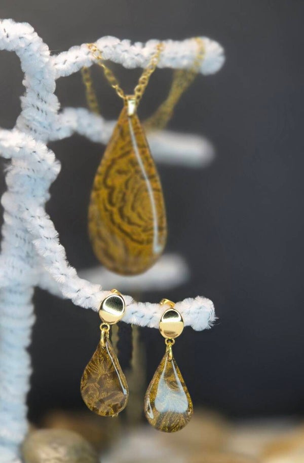 Colgante de la colección OTOÑO, hecho de forma artesana con arcilla polimérica metalizada en marrón dorado
