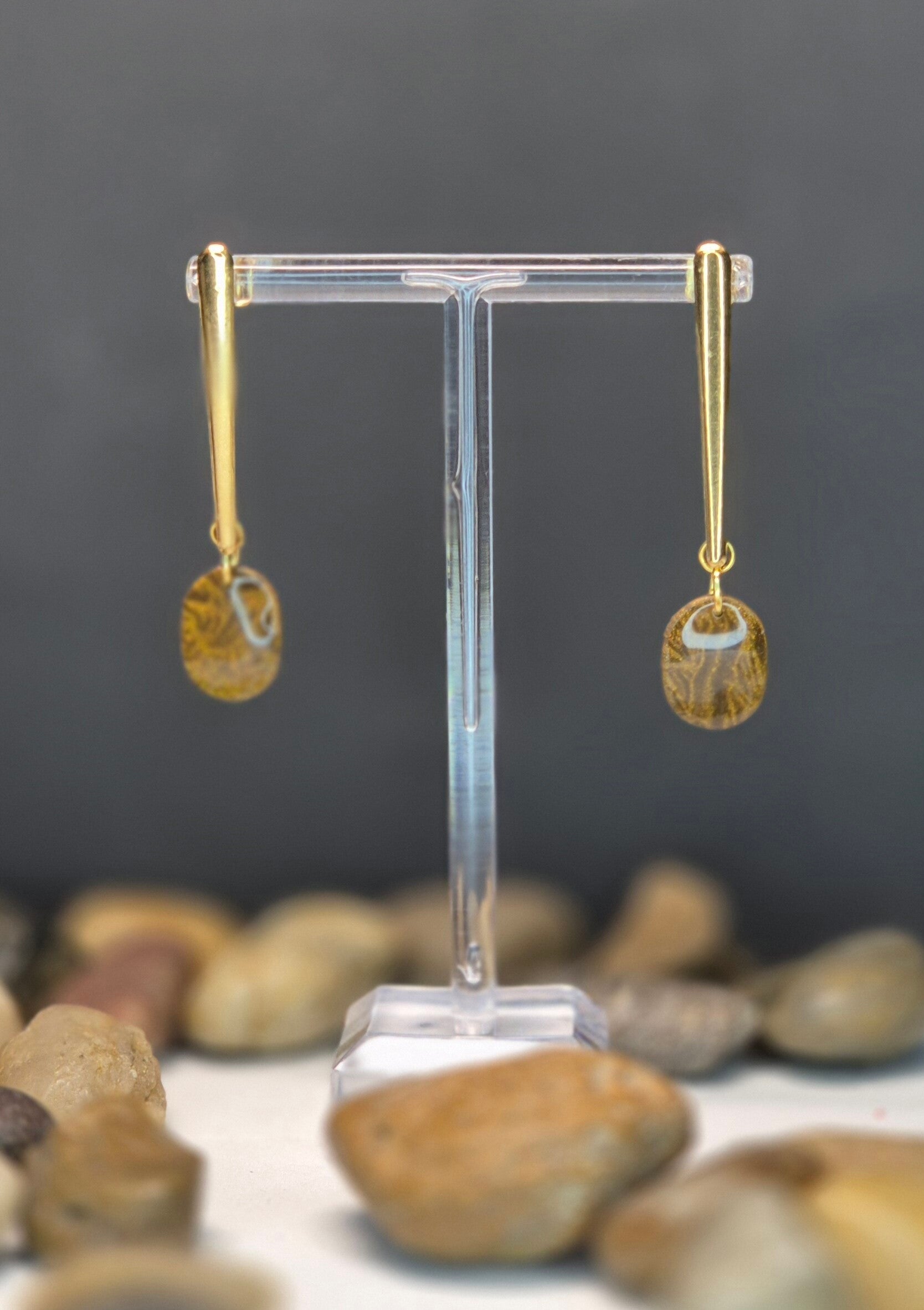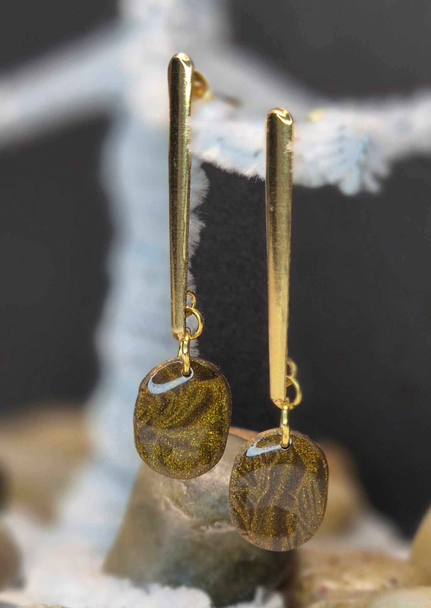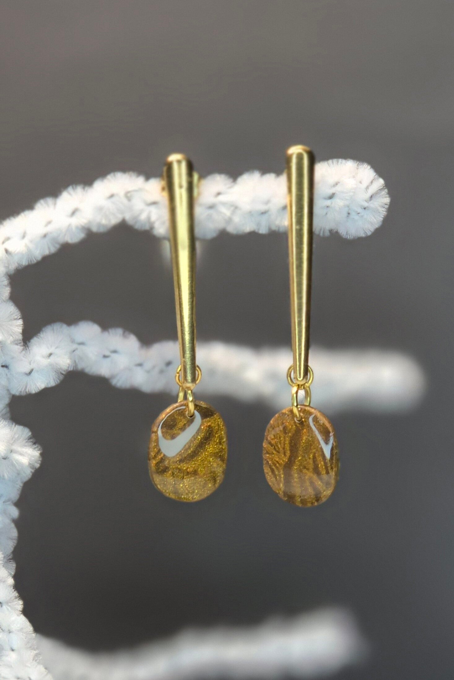 Pendientes de la colección OTOÑO, hechos de forma artesana con arcilla polimérica metalizada en color marrón dorado.