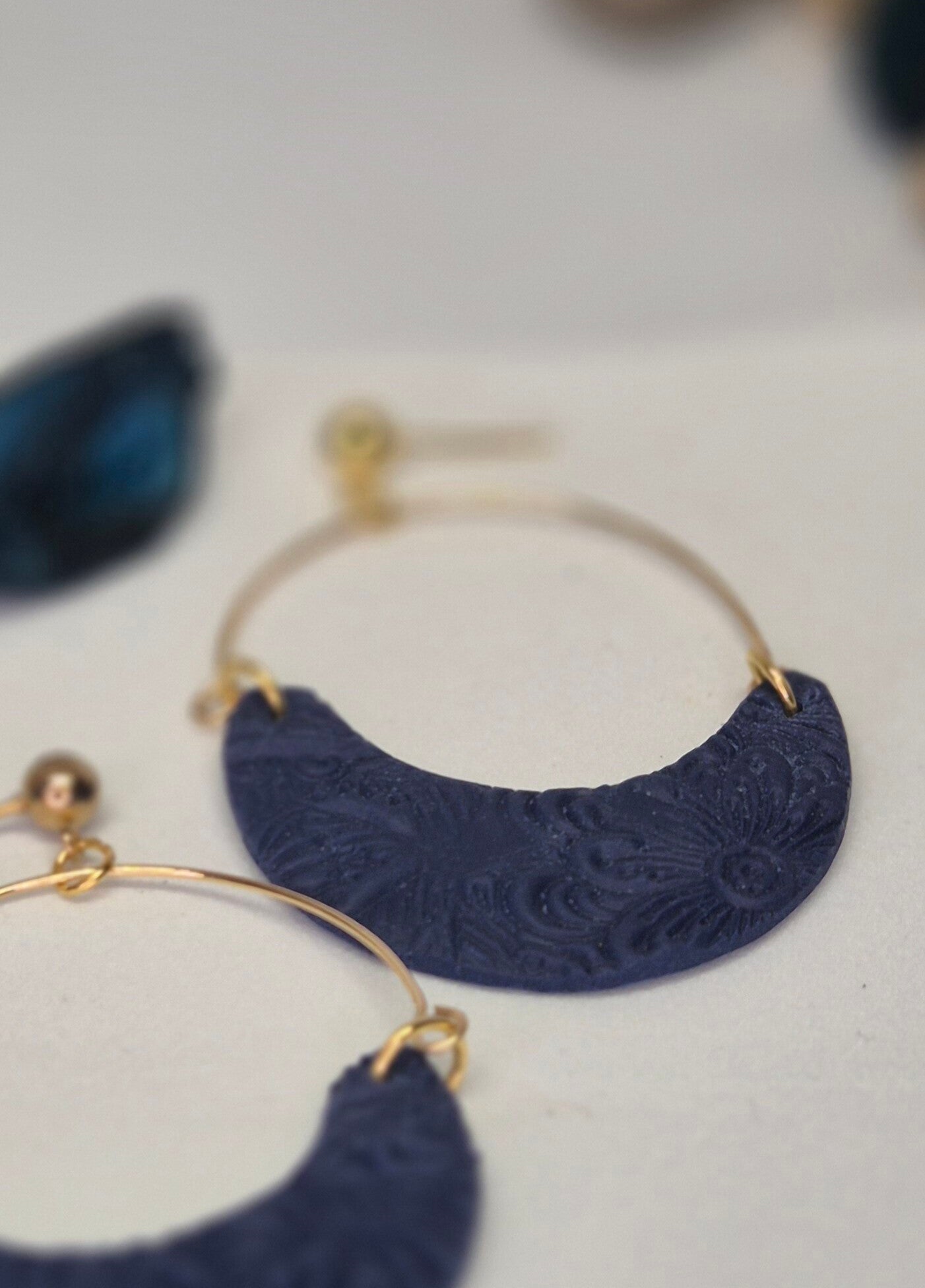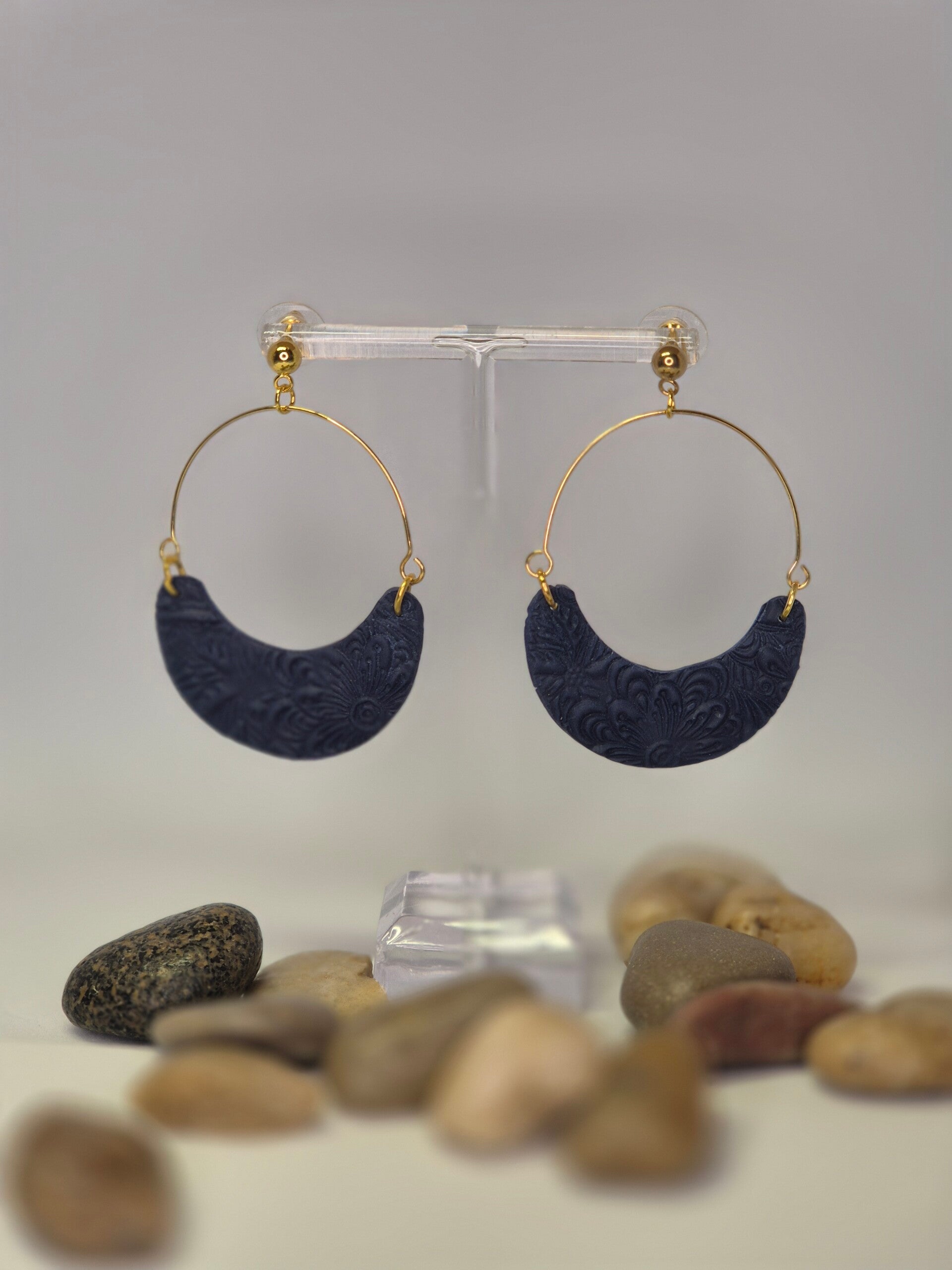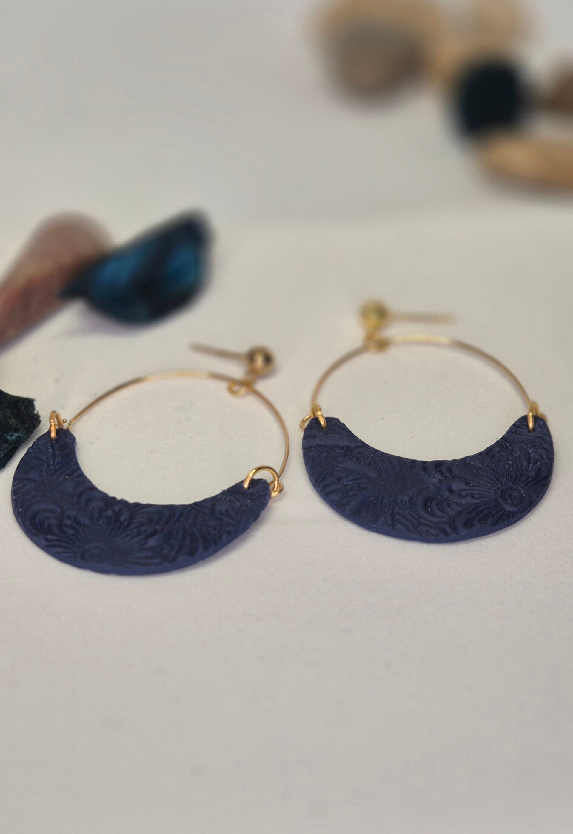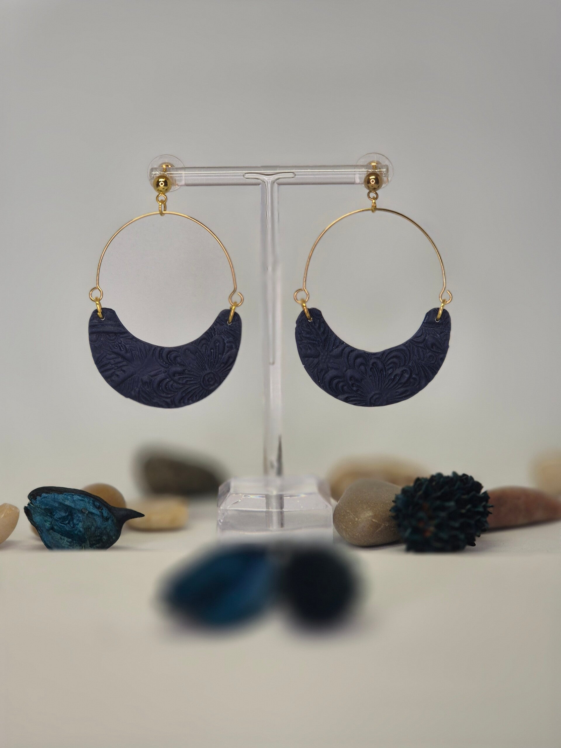 Pendientes de arcilla polimérica en azul noche con relieve por las dos caras.