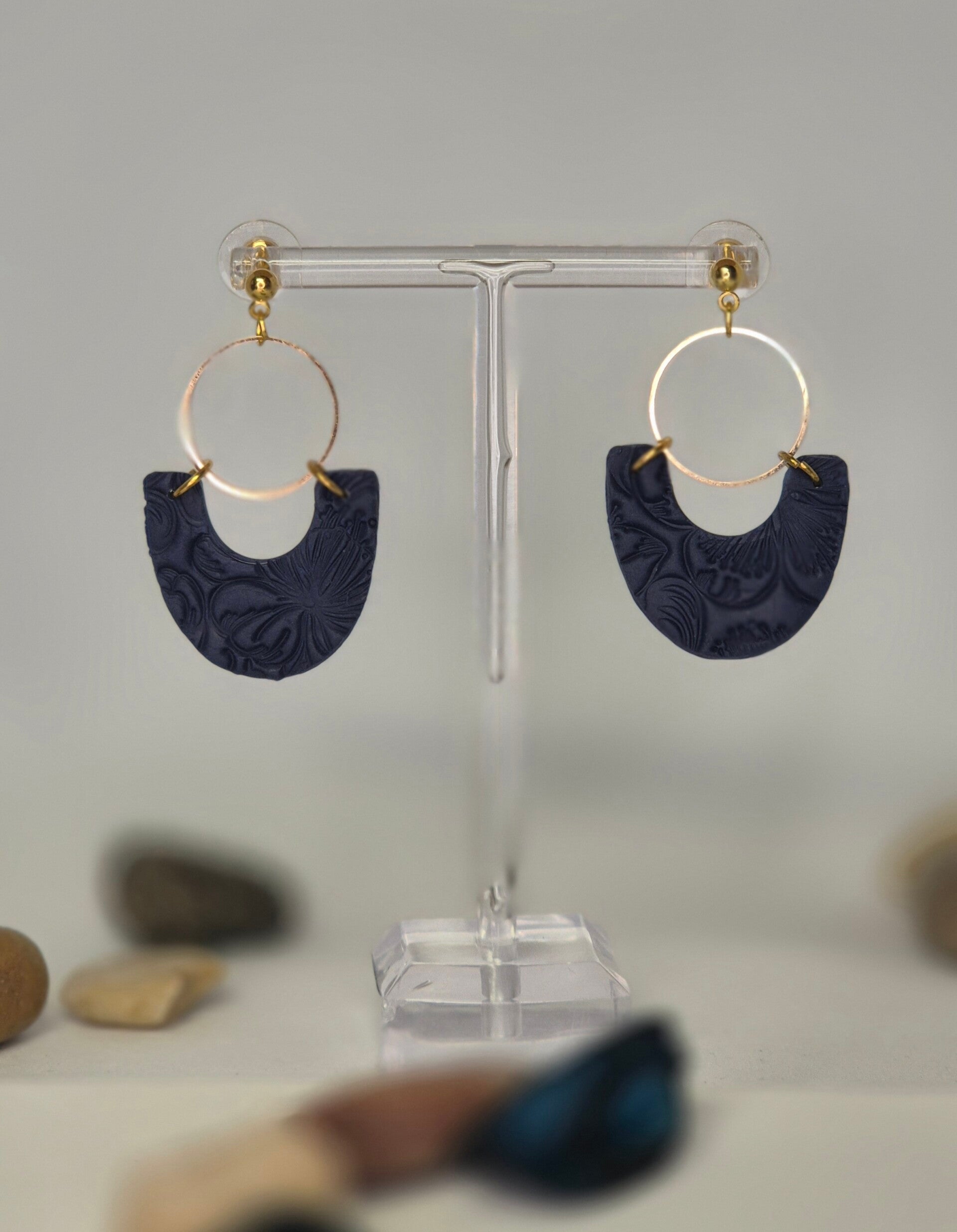 Pendientes de arcilla polimérica en azul noche con relieve por las dos caras.