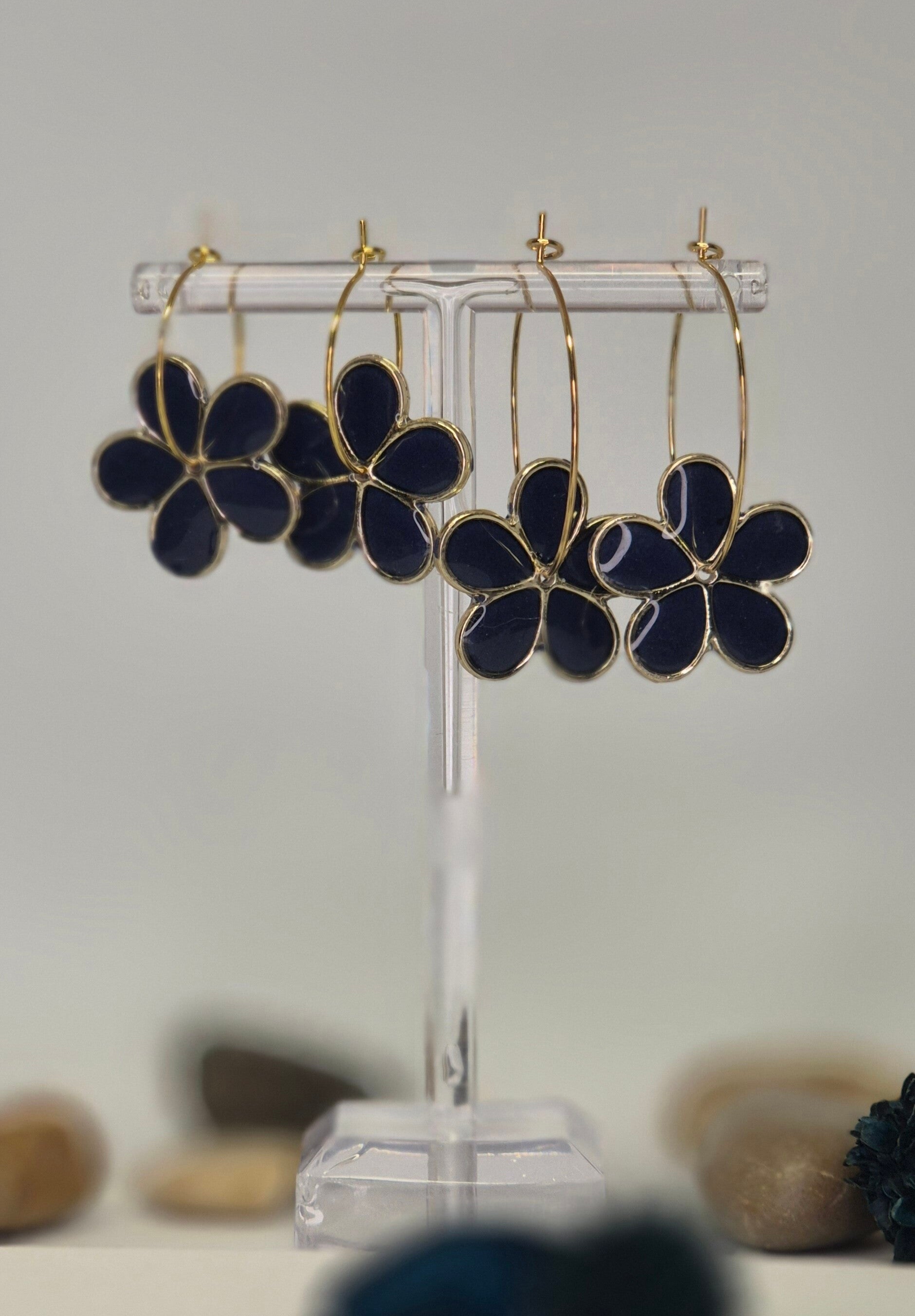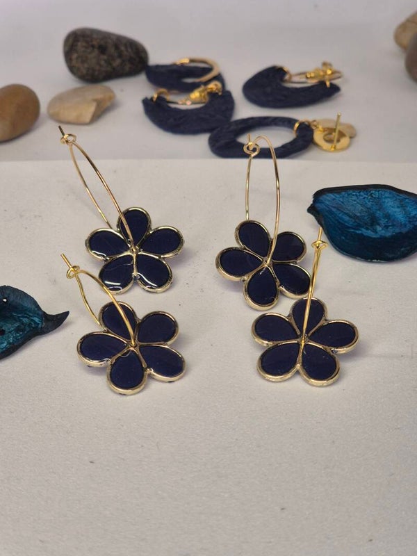 Pendientes de arcilla polimérica en azul noche con relieve por las dos caras.