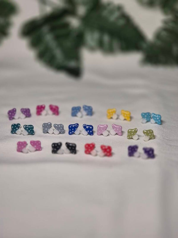 Nuestros Coquetas hechos de arcilla polimérica en forma de seta y en diferentes colores y tonos para que los puedas poner cada día en un color distinto o combinar con tu estilo.