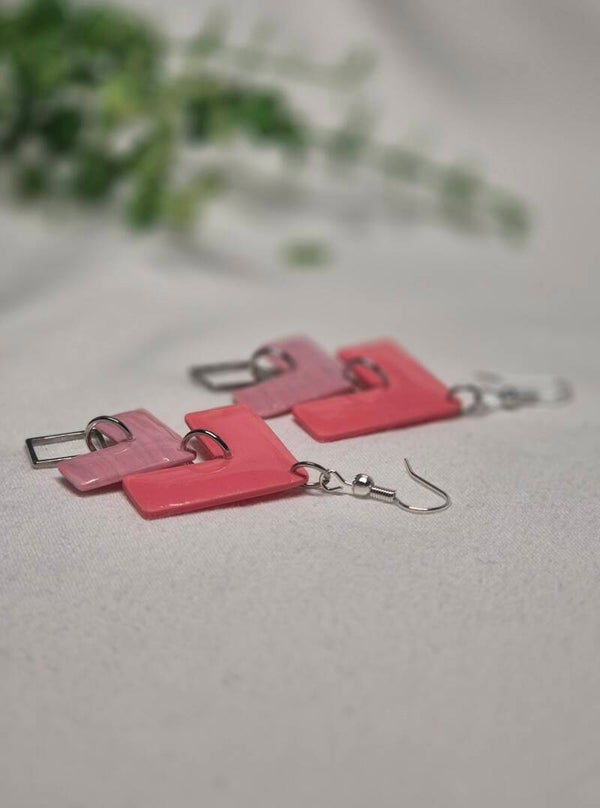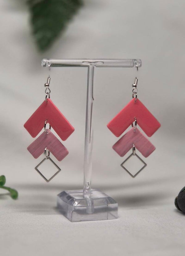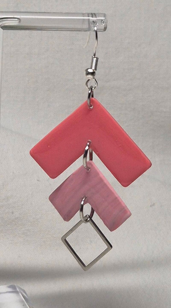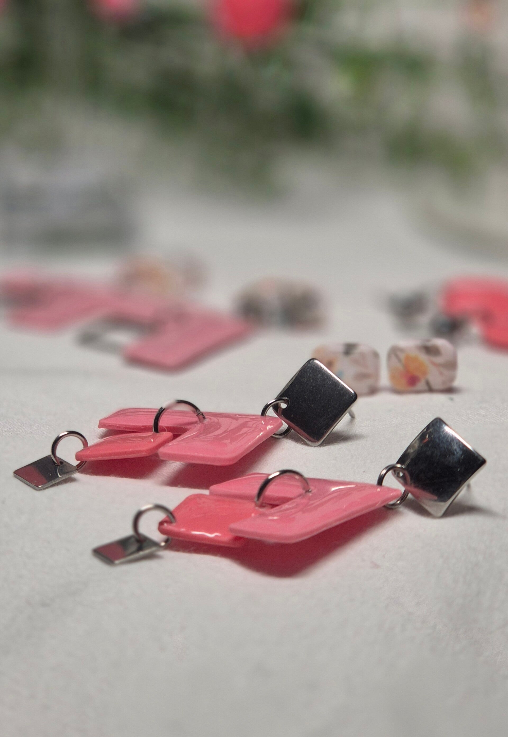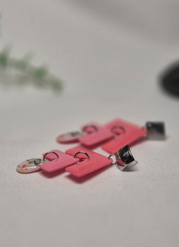 Pendientes de arcilla polimérica en tonos coral combinados con estampado de flores.