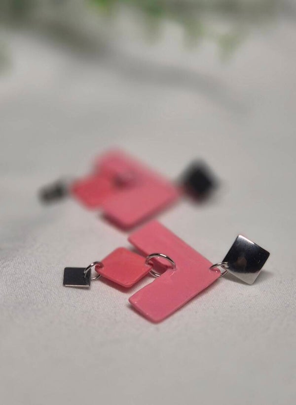 Pendientes de arcilla polimérica en tonos coral combinados con estampado de flores.