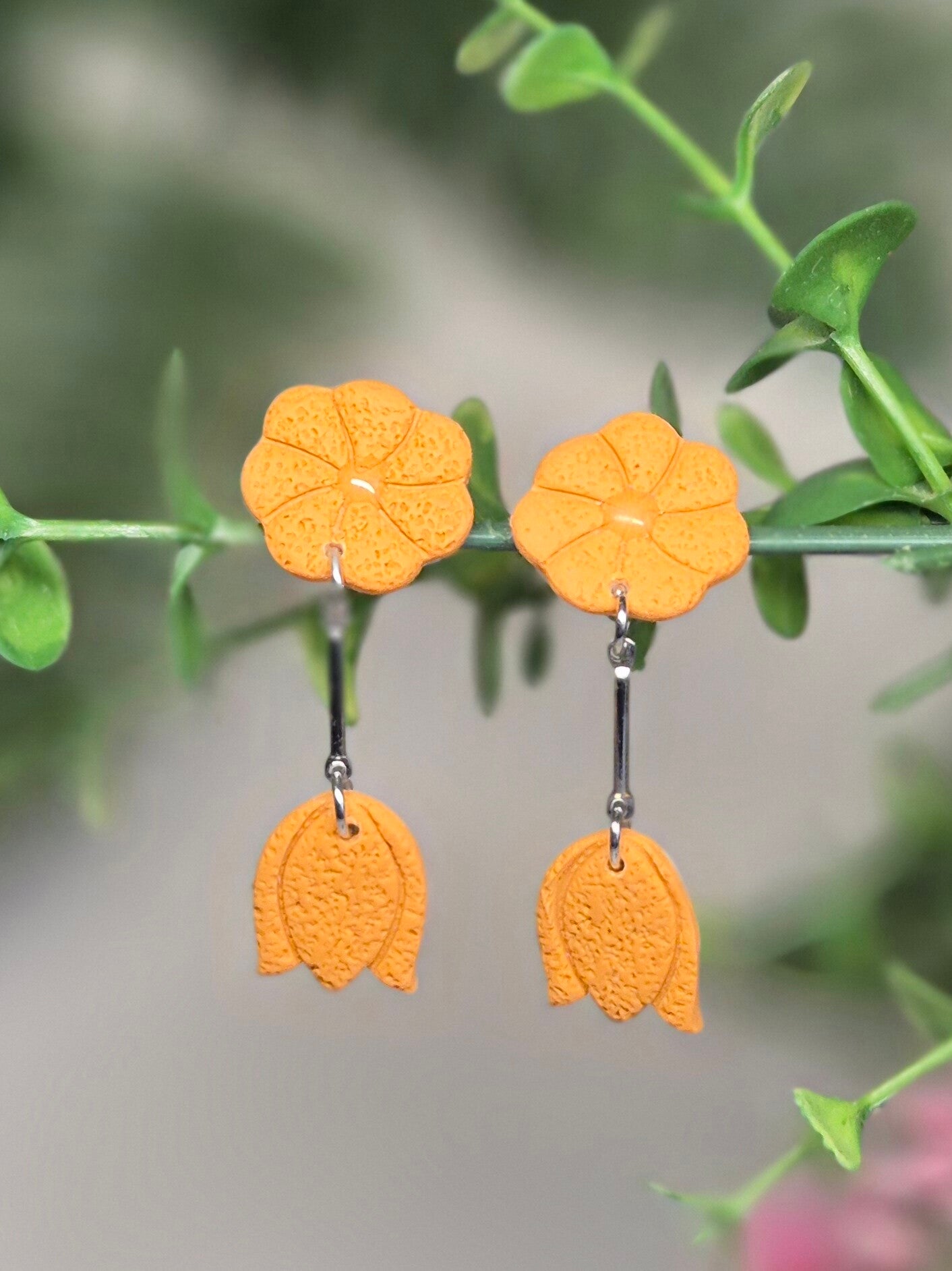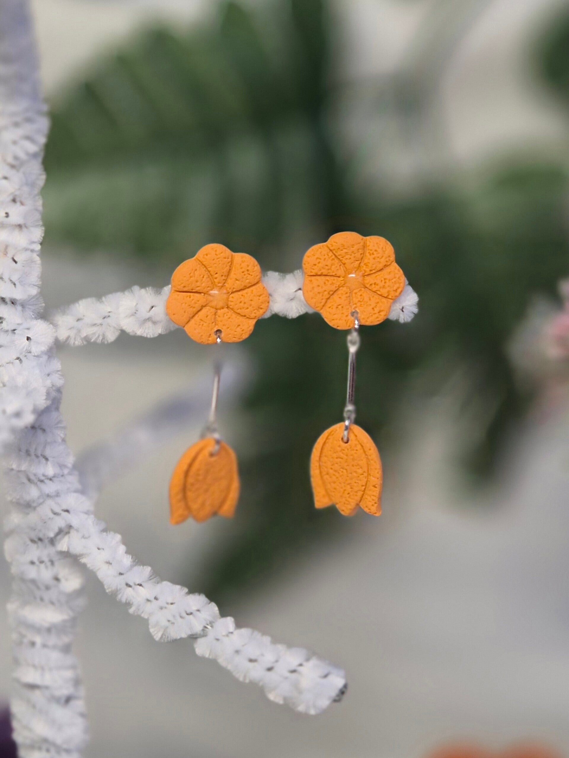 Pendientes hechos a mano con arcilla polimérica.
