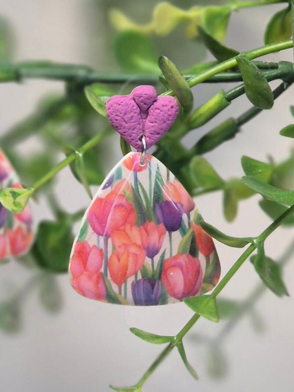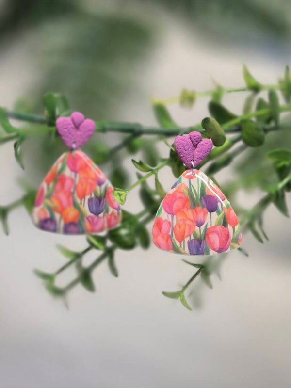 Pendientes hechos a mano con arcilla polimérica.