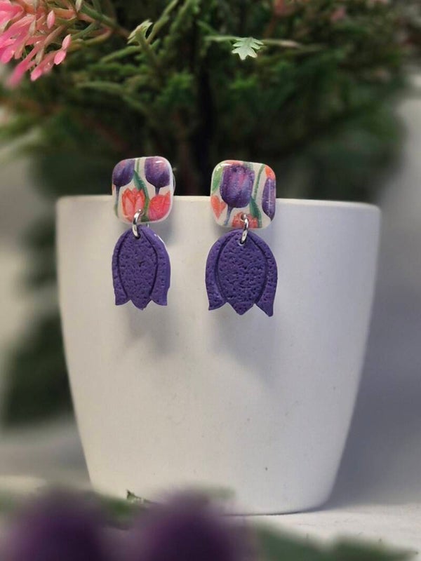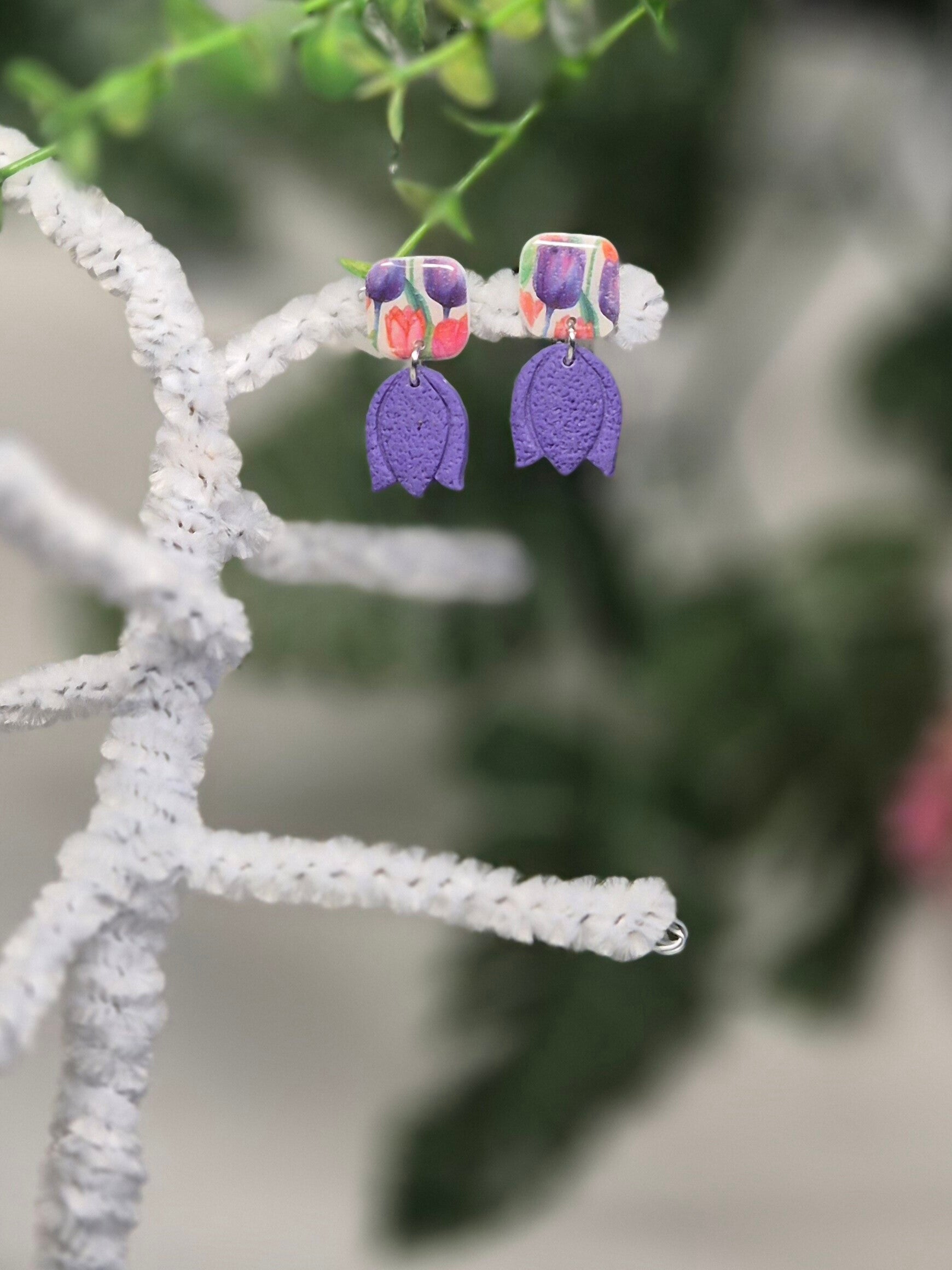 Pendientes hechos a mano con arcilla polimérica.