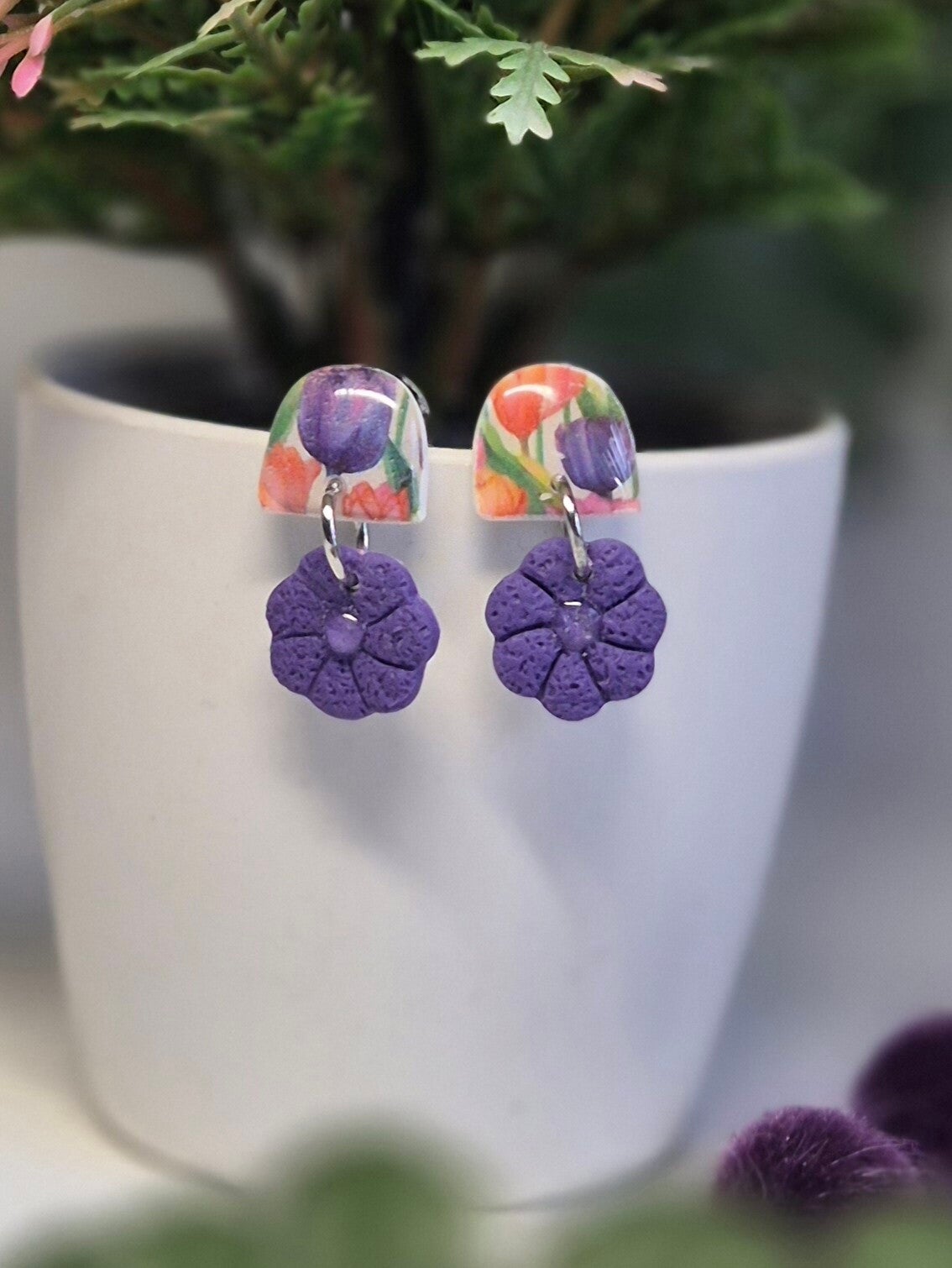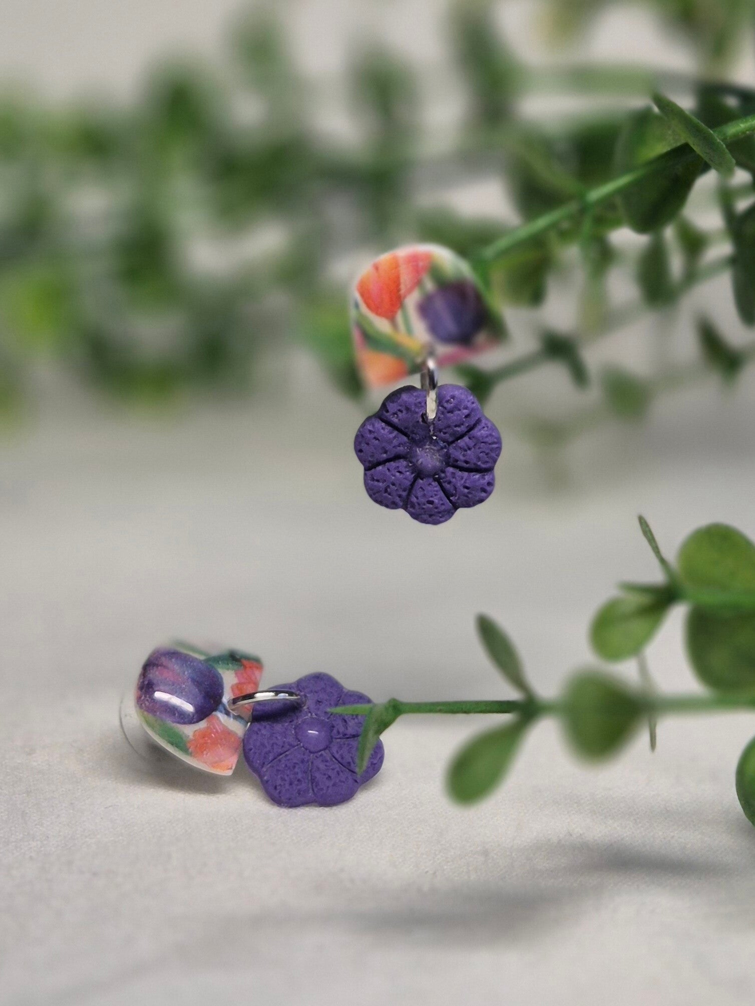 Pendientes hechos a mano con arcilla polimérica.