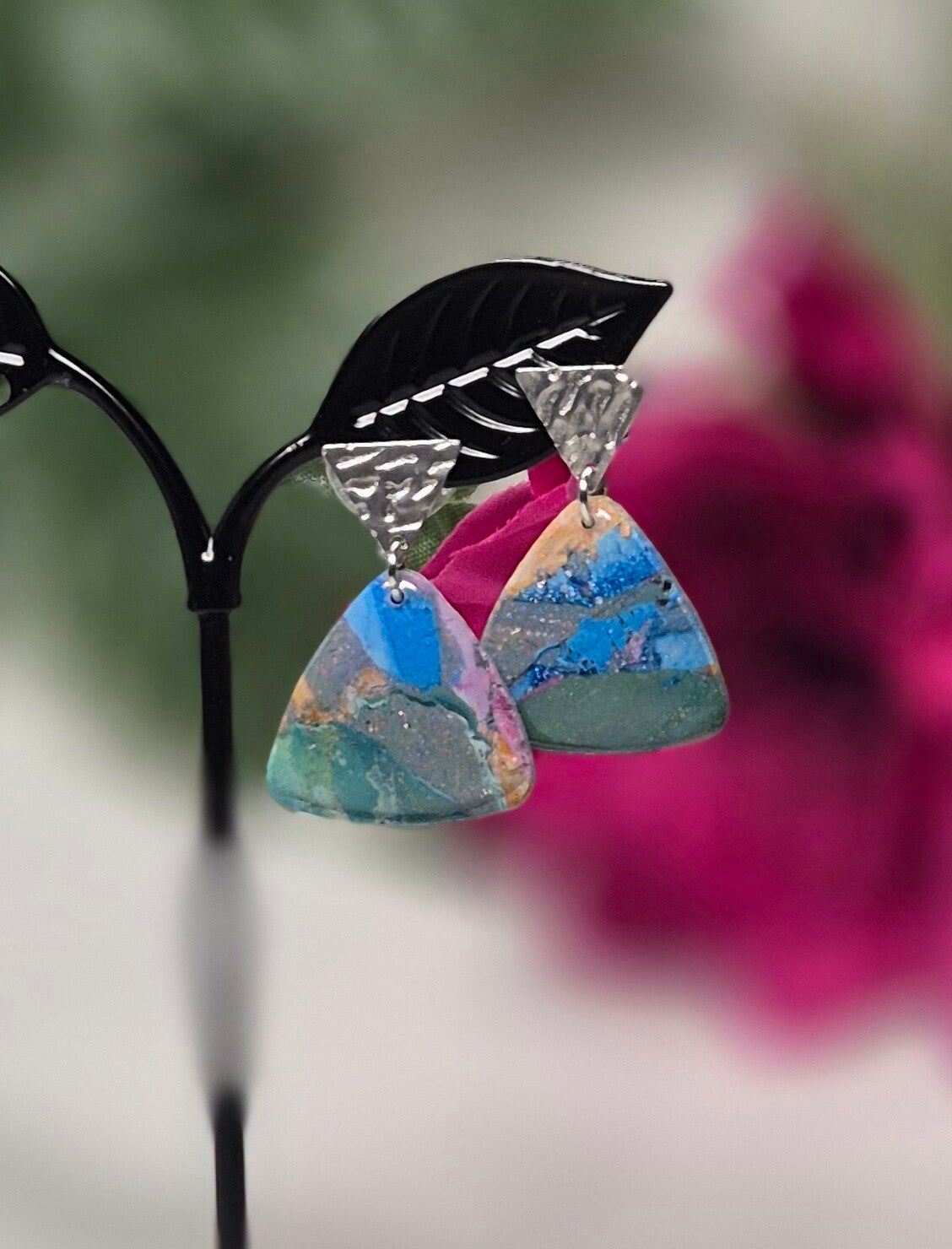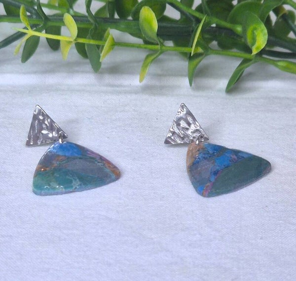 Pendientes artesanales inspirados en los colores y formas de Icod de los Vinos, de un recuerdo entre un enorme drago, viñedos, lava y plata...Ligeros, únicos y llenos de historia.
