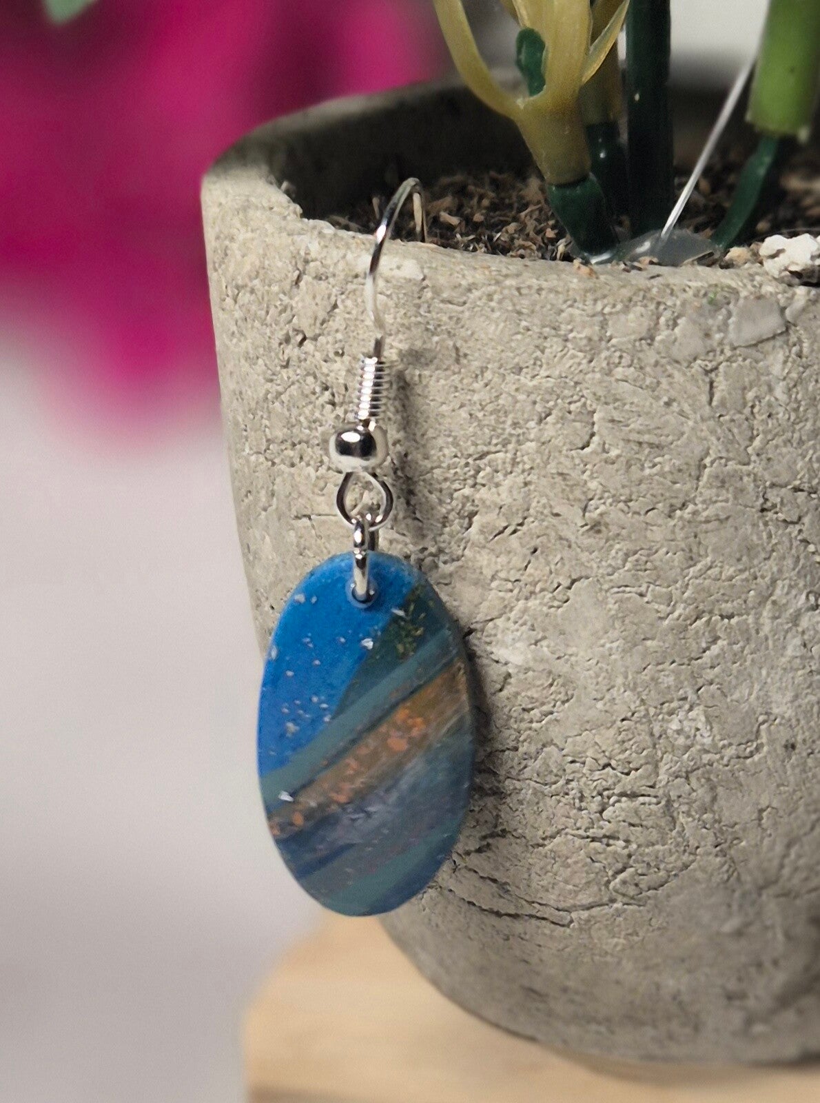 Pendientes artesanales inspirados en los colores y formas de Icod de los Vinos, de un recuerdo entre un enorme drago, viñedos, lava y plata...Ligeros, únicos y llenos de historia.