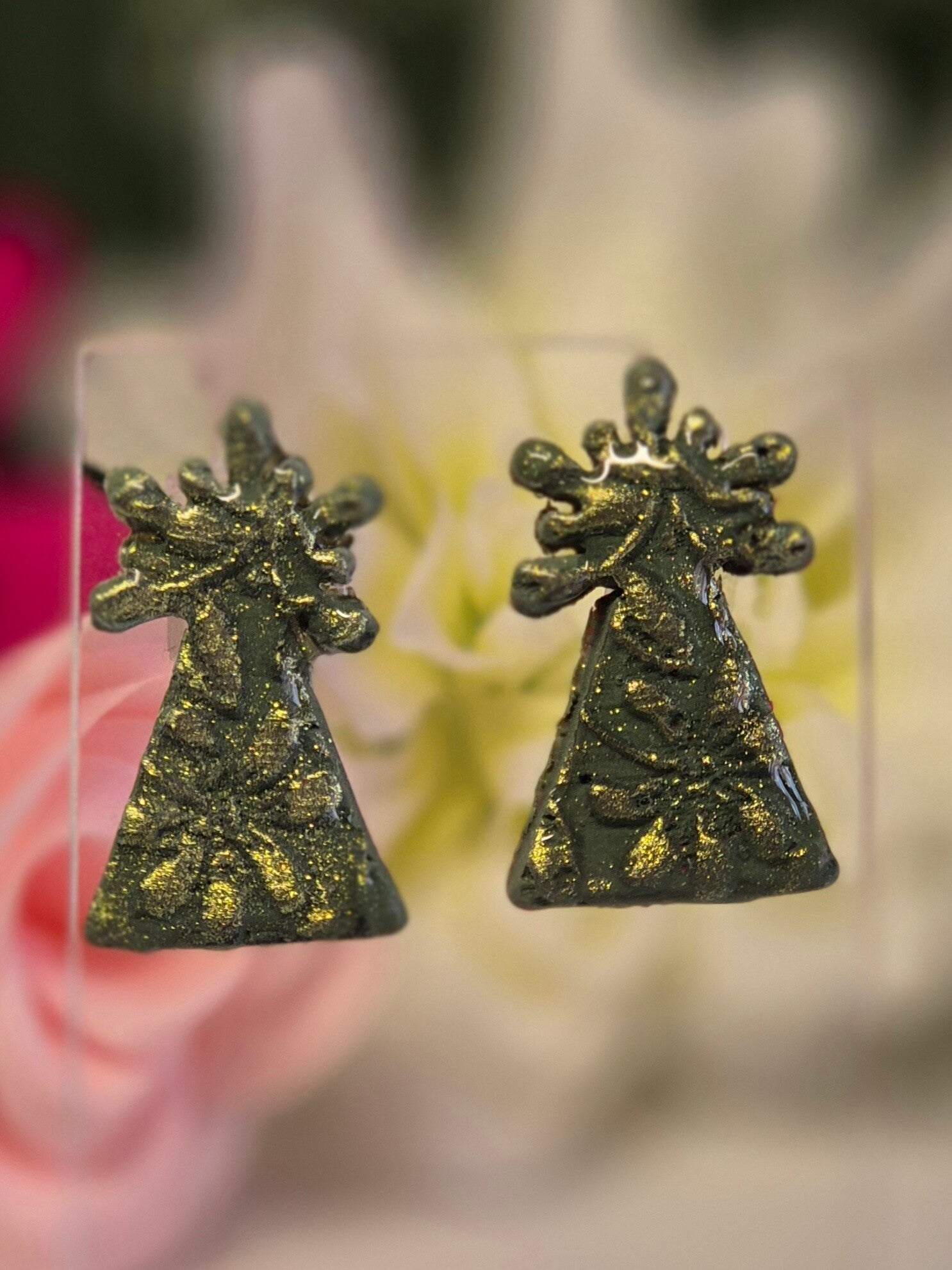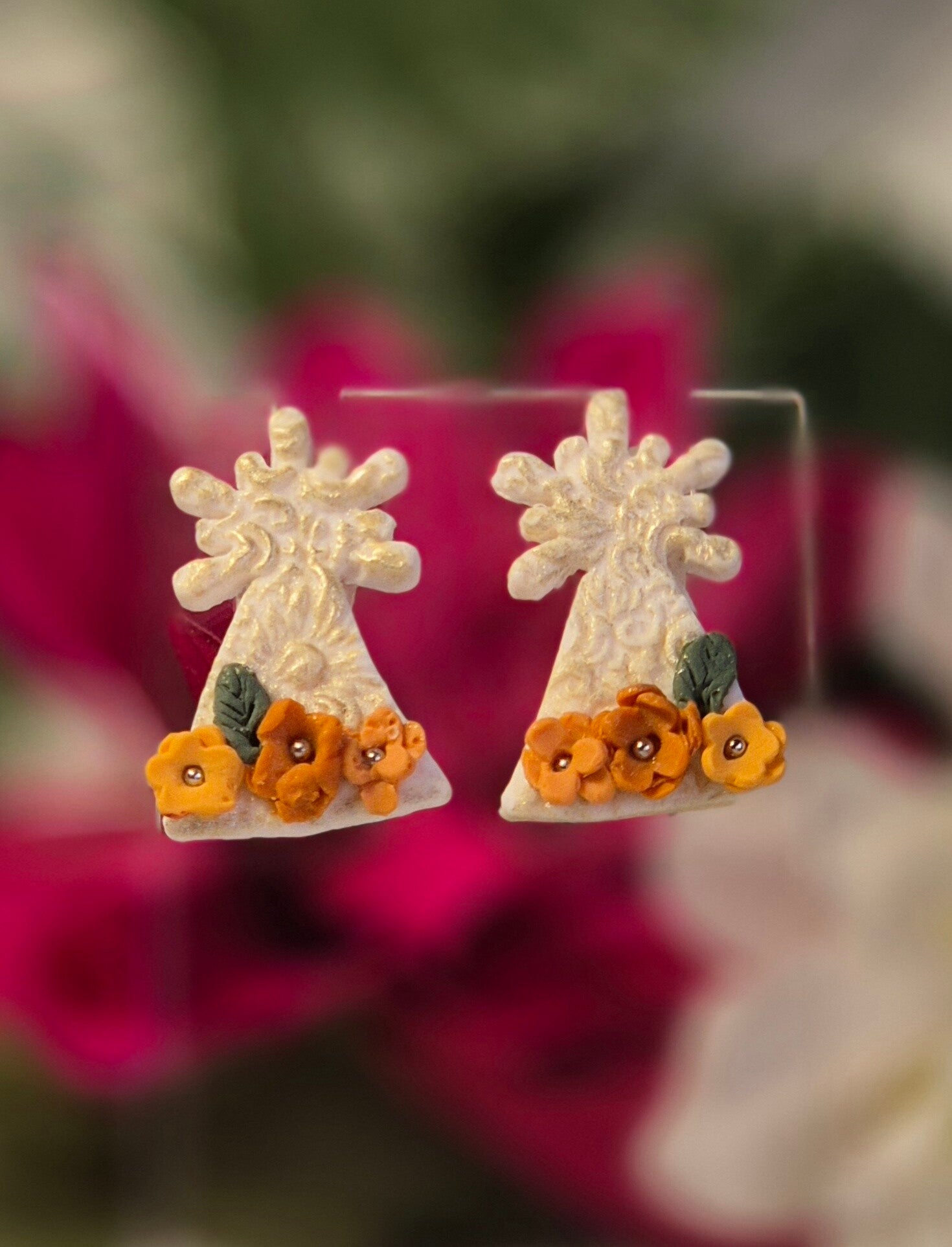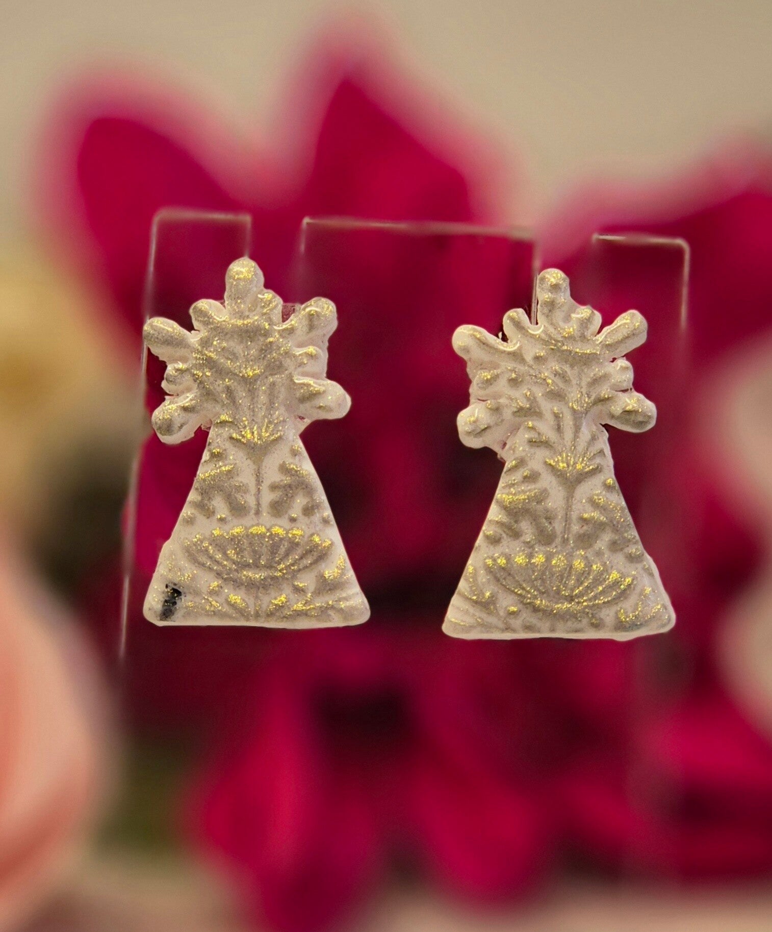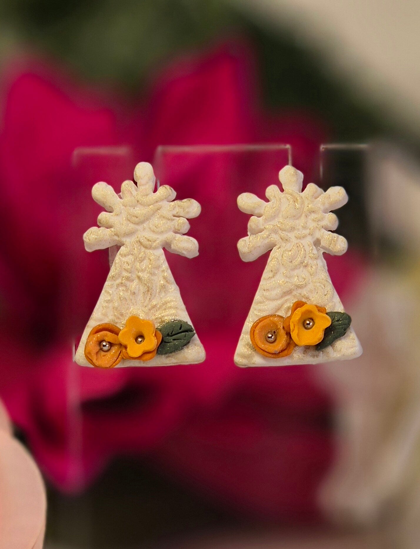 Pendientes de la imagen de la Virgen del Pilar, hechos en arcilla polimérica a mano, con todo el mimo que Ella se merece.