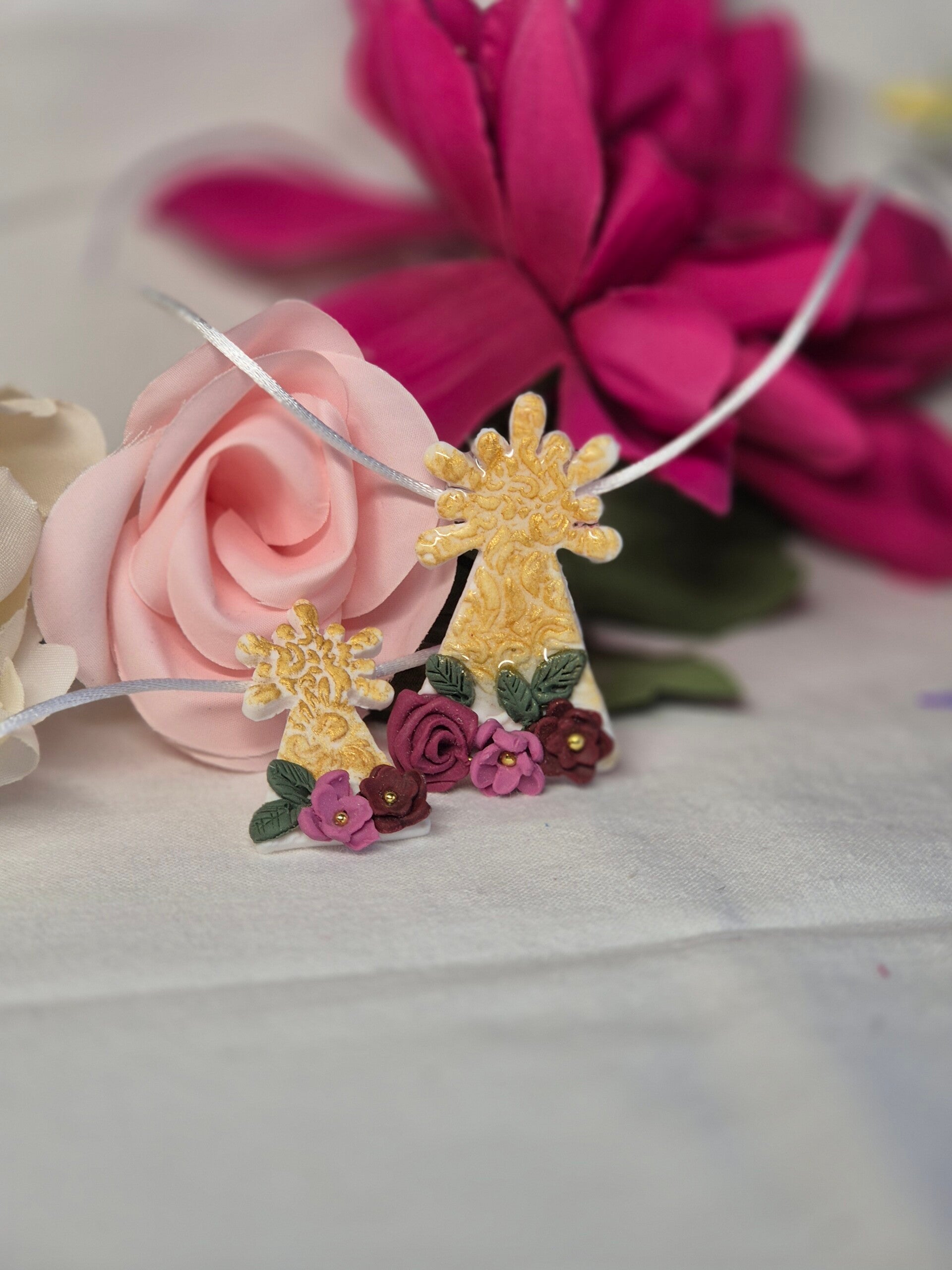Personalizable: elegir la altura, el estampado o el color de base, el color del brillo metalizado, el color de las flores y la cantidad de ellas (0, 1, 2 ó 3) Especificar cada característica en la hoja de pedido o con un wassap al 649.76.87.52