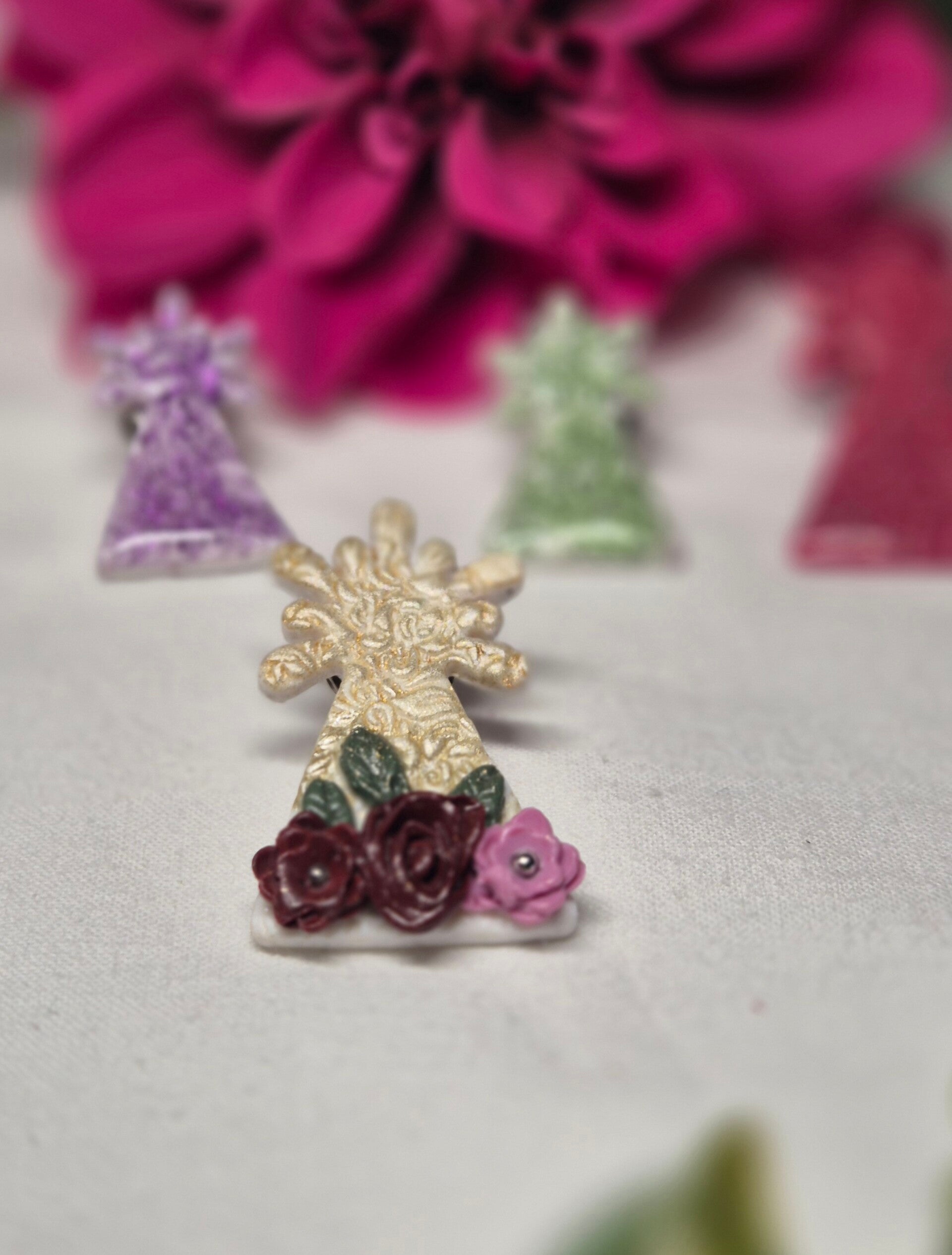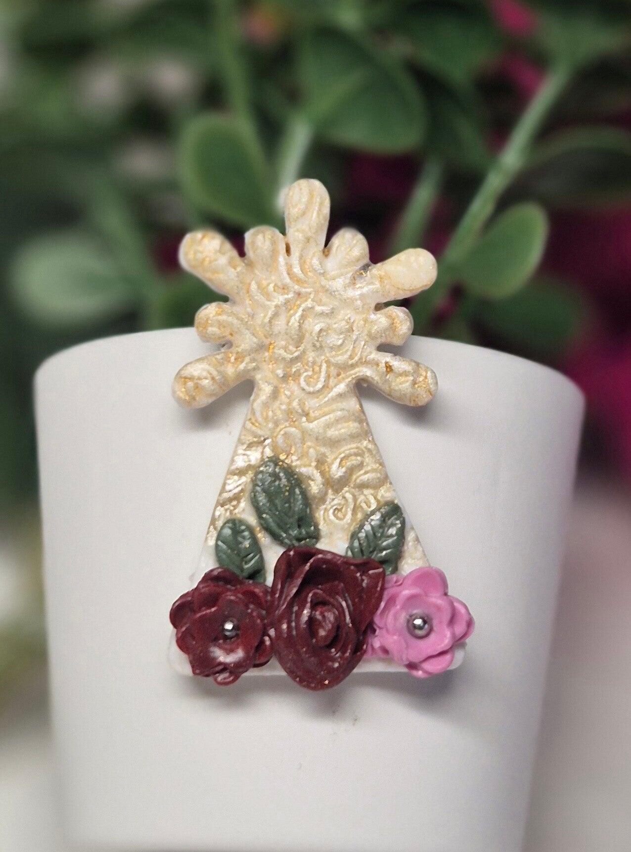 Pin de la imagen de la Virgen del Pilar, hecho en arcilla polimérica a mano, con todo el cariño y respeto que Ella se merece.