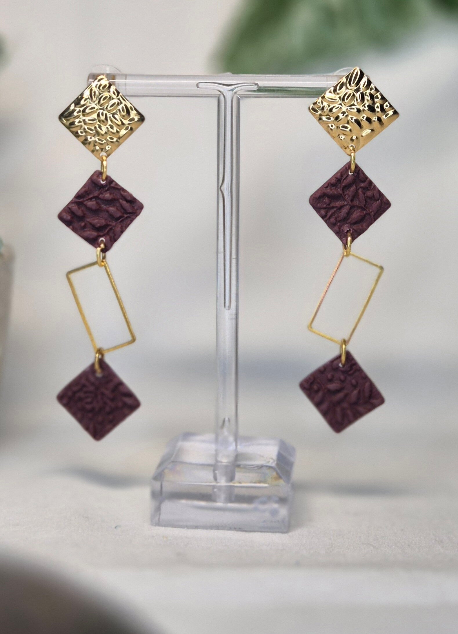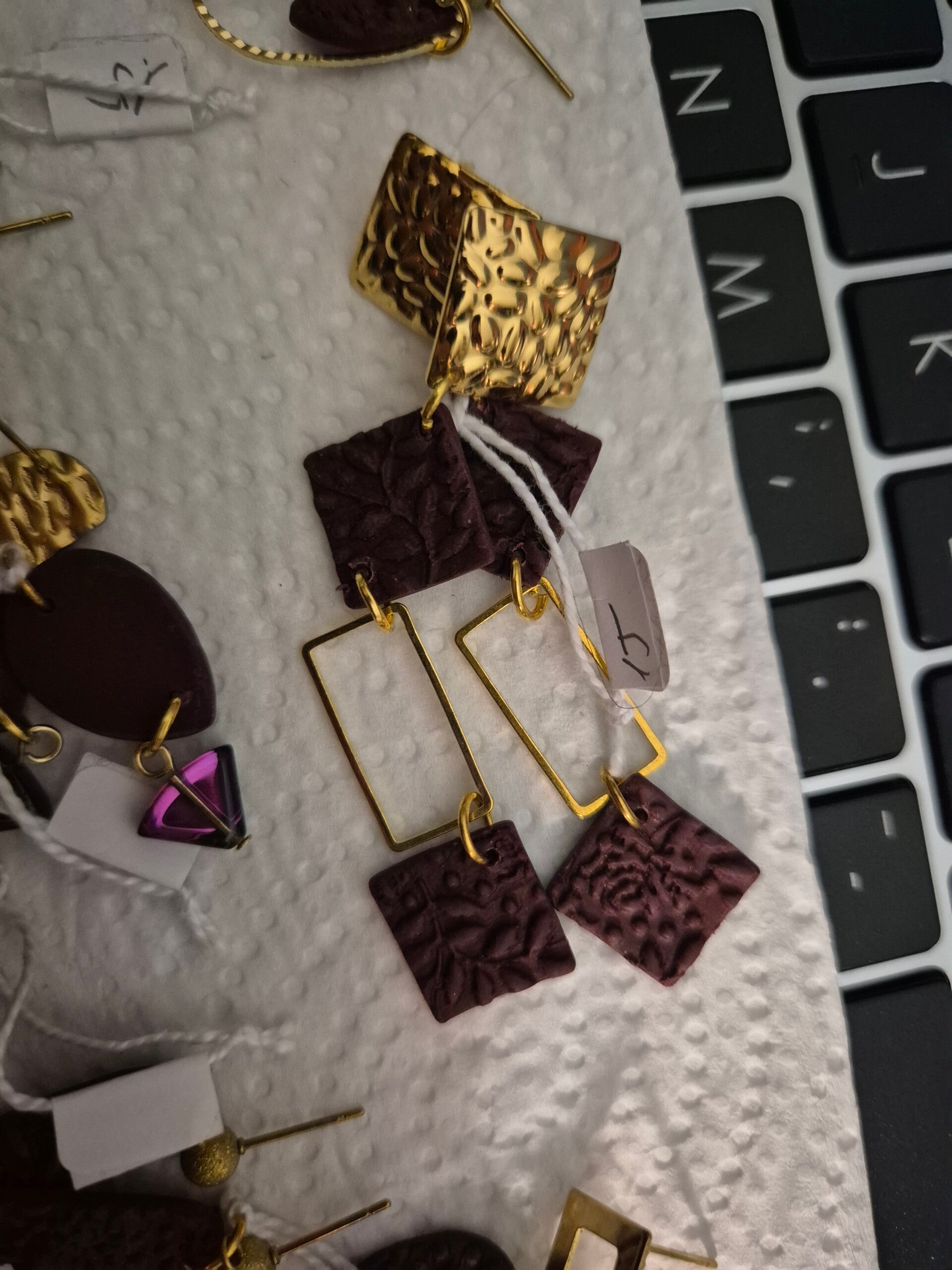Pendientes hechos artesanalmente con arcilla polimérica en granate y con relieve vegetal, inspirado en ese color que guarda un recuerdo. Una pieza que late suave, con textura orgánica y un acabado que hace que el granate no solo se vea: se sienta.