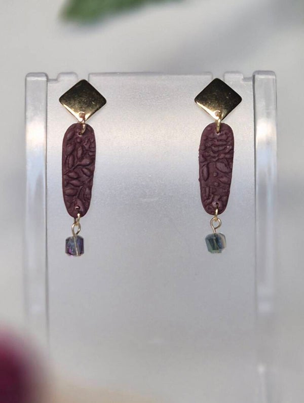 Pendientes hechos artesanalmente con arcilla polimérica en granate y con relieve vegetal, inspirado en ese color que guarda un recuerdo. Una pieza que late suave, con textura orgánica y un acabado que hace que el granate no solo se vea: se sienta.