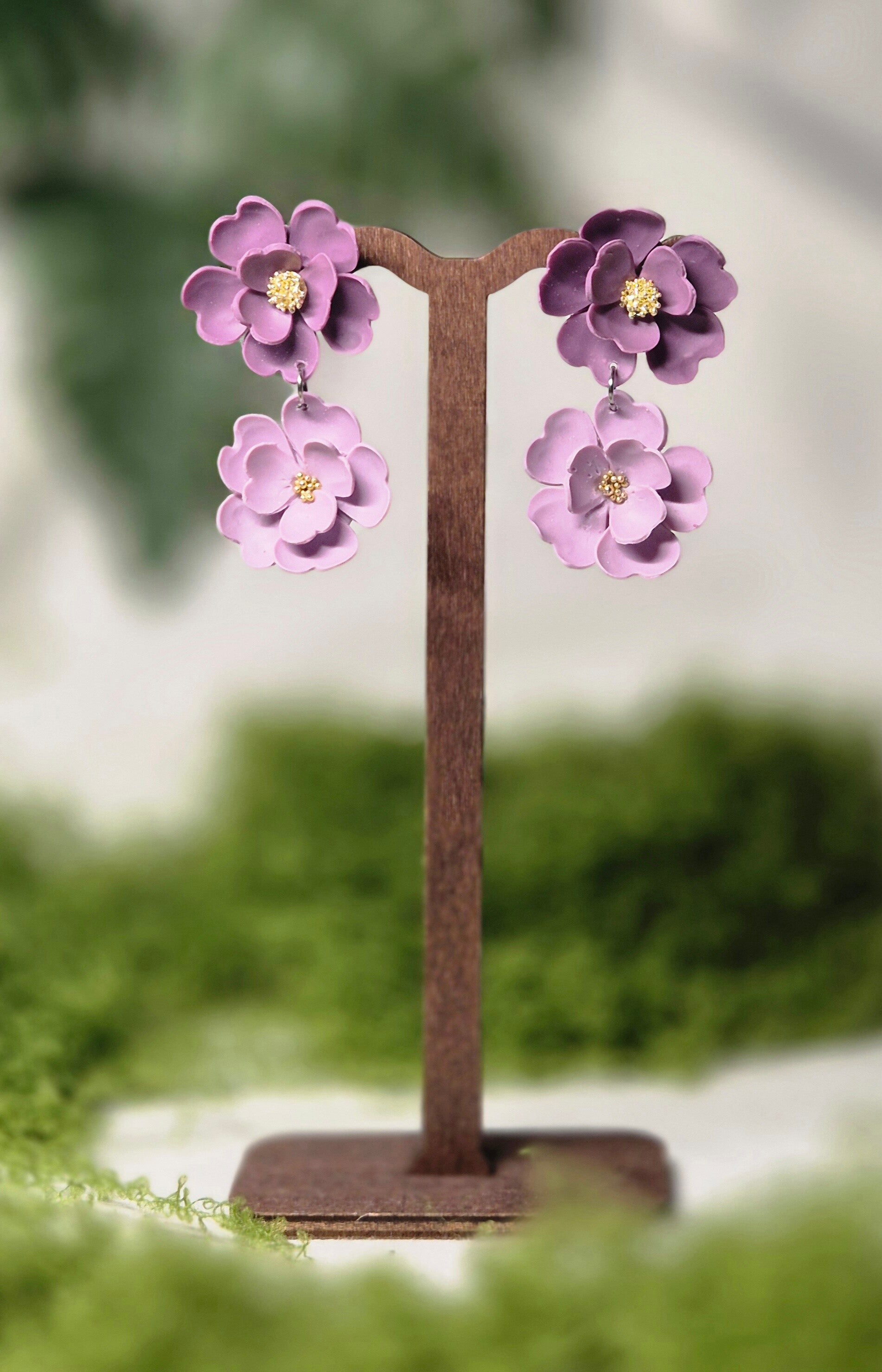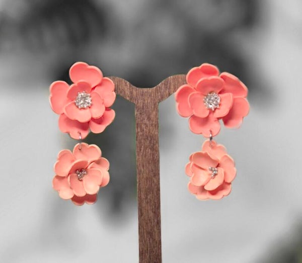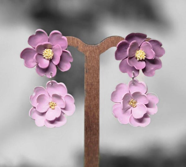 Doble flor con pétalos en forma de corazón que se mueve al compás de tu día. Ligeros y llenos de detalle, los protagonistas de la colección. Perfectos para quienes buscáis un toque artesanal y elegante.
