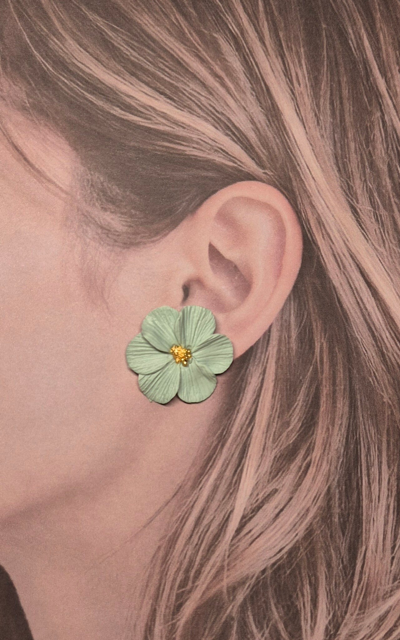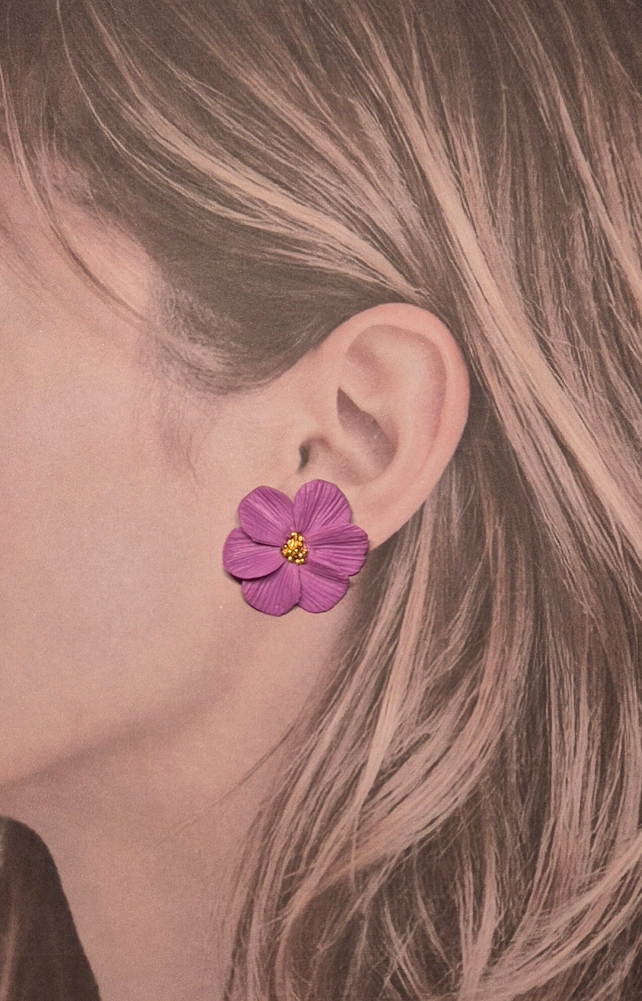Pendientes de flor mediana de seis pétalos con un cierto volumen y elegante, que te servirá para acompañar cualquier look. Sutil, femenina y ponible. Transmite delicadeza y armonía en cada pendiente.